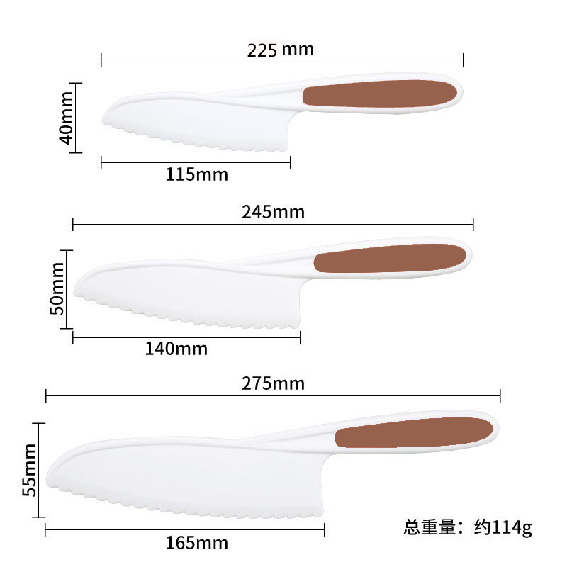 brown handle pp round head cake knife three-piece set