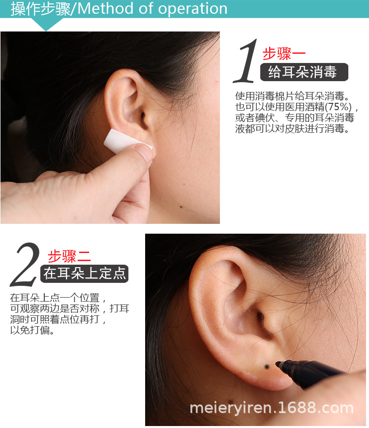 1 generation round head [glazed surface ear stud _1 pieces] get sterilized cotton free