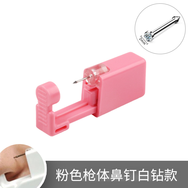 pink gun body nose stud white diamond