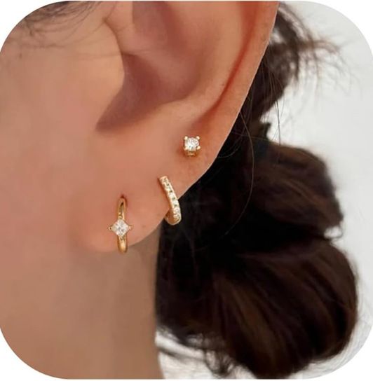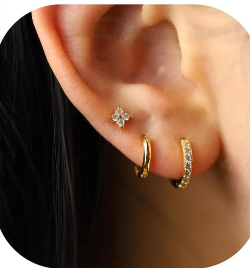 e310 silver single ear one card three pieces