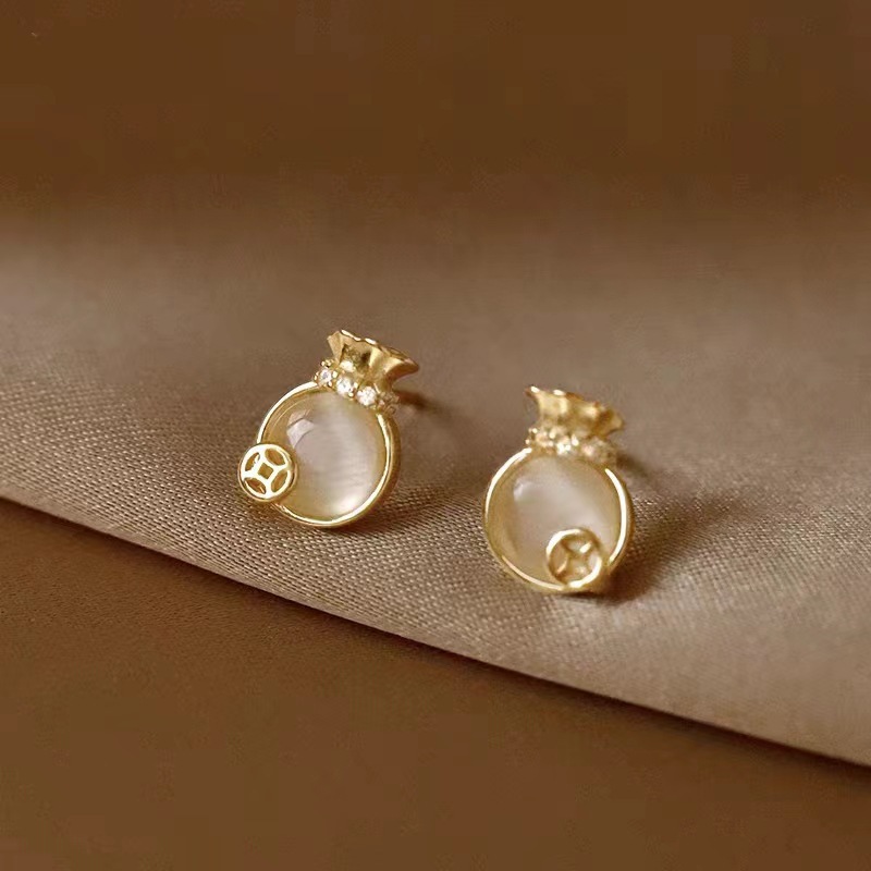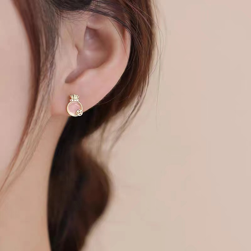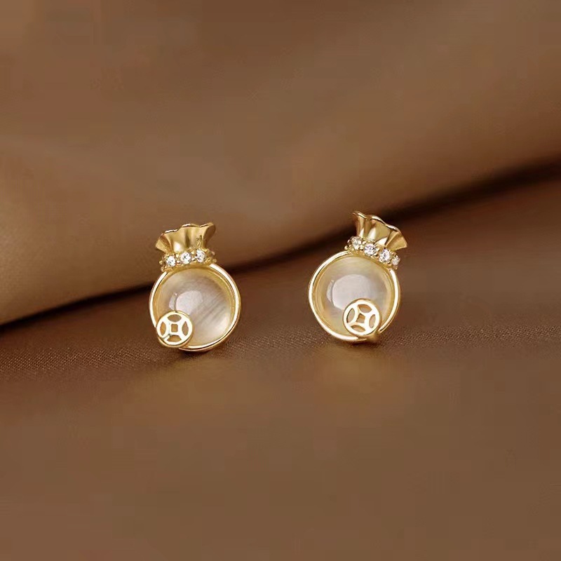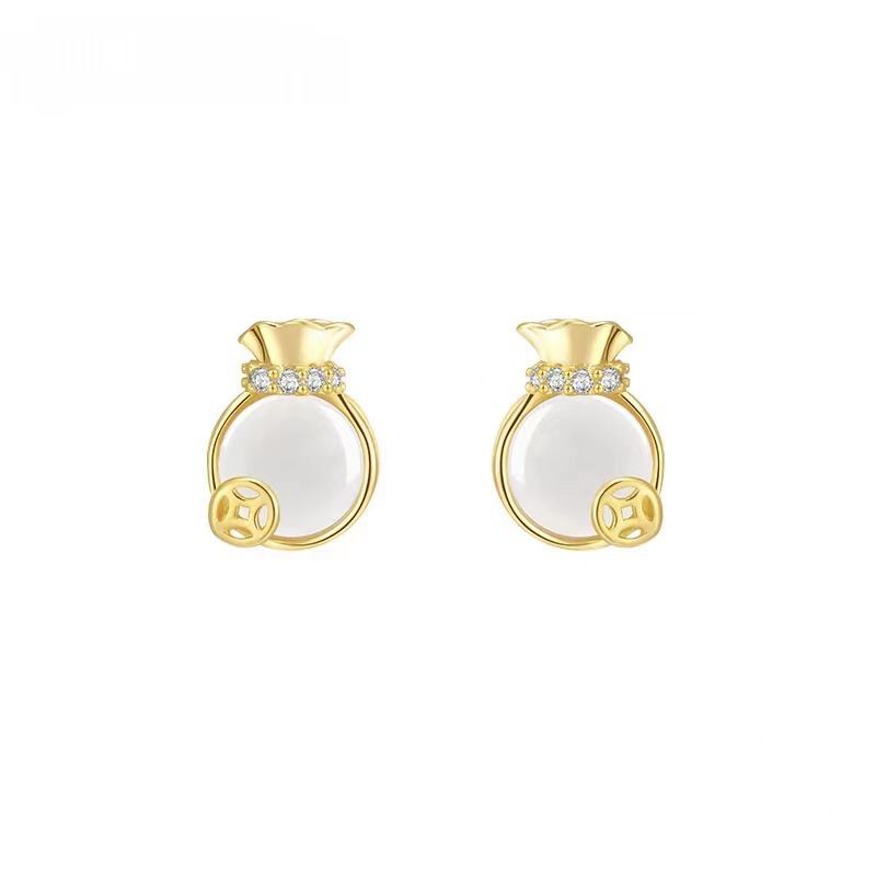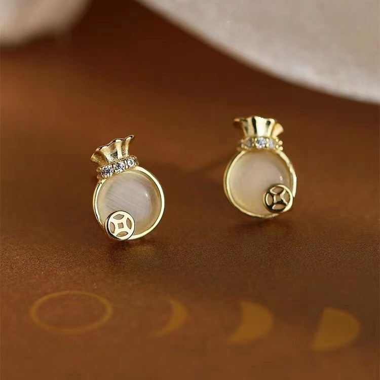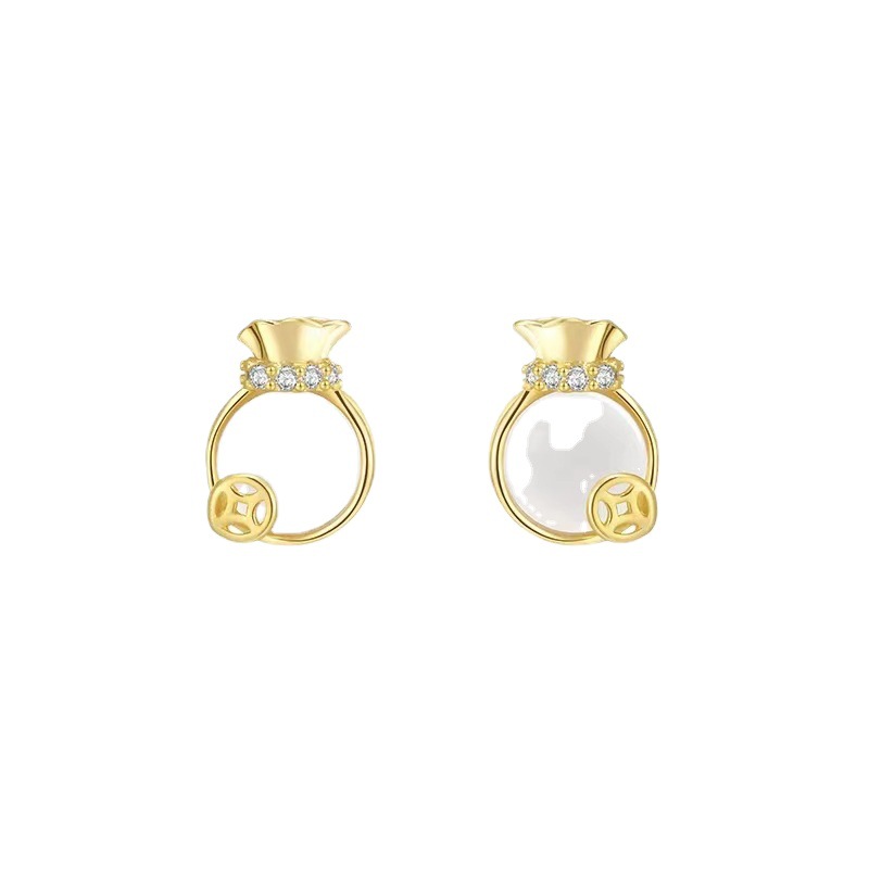 golden money bag ear studs