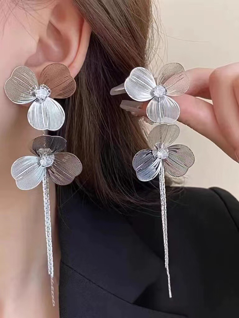 two flower tassel silver pairs eh083