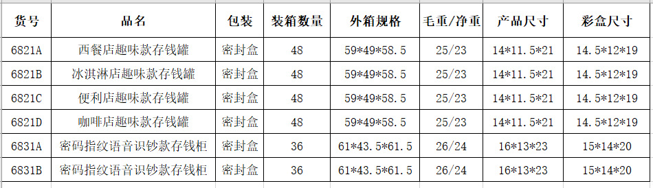 Product item number, specifications, gross and net weights, and packing quantity: as follows.