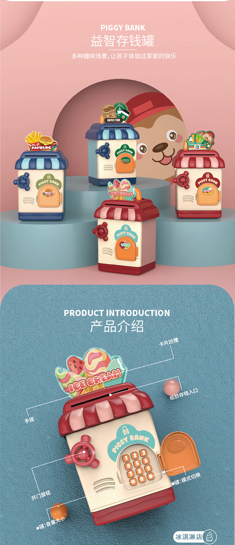 ice cream shop fun coin bank