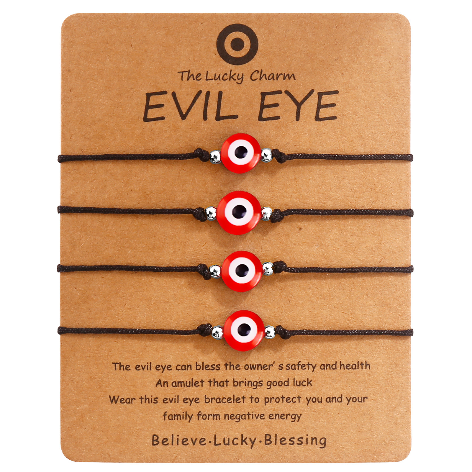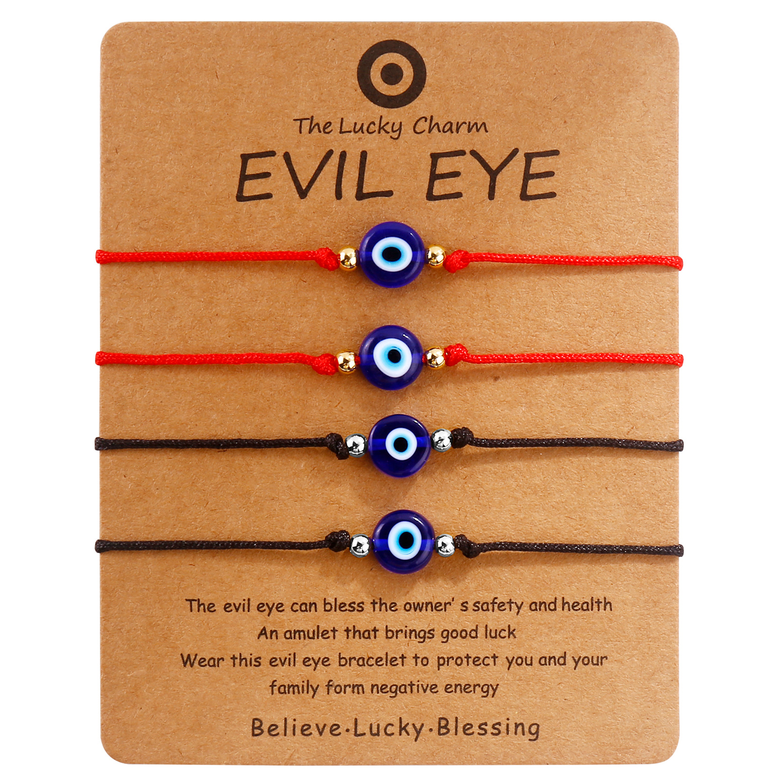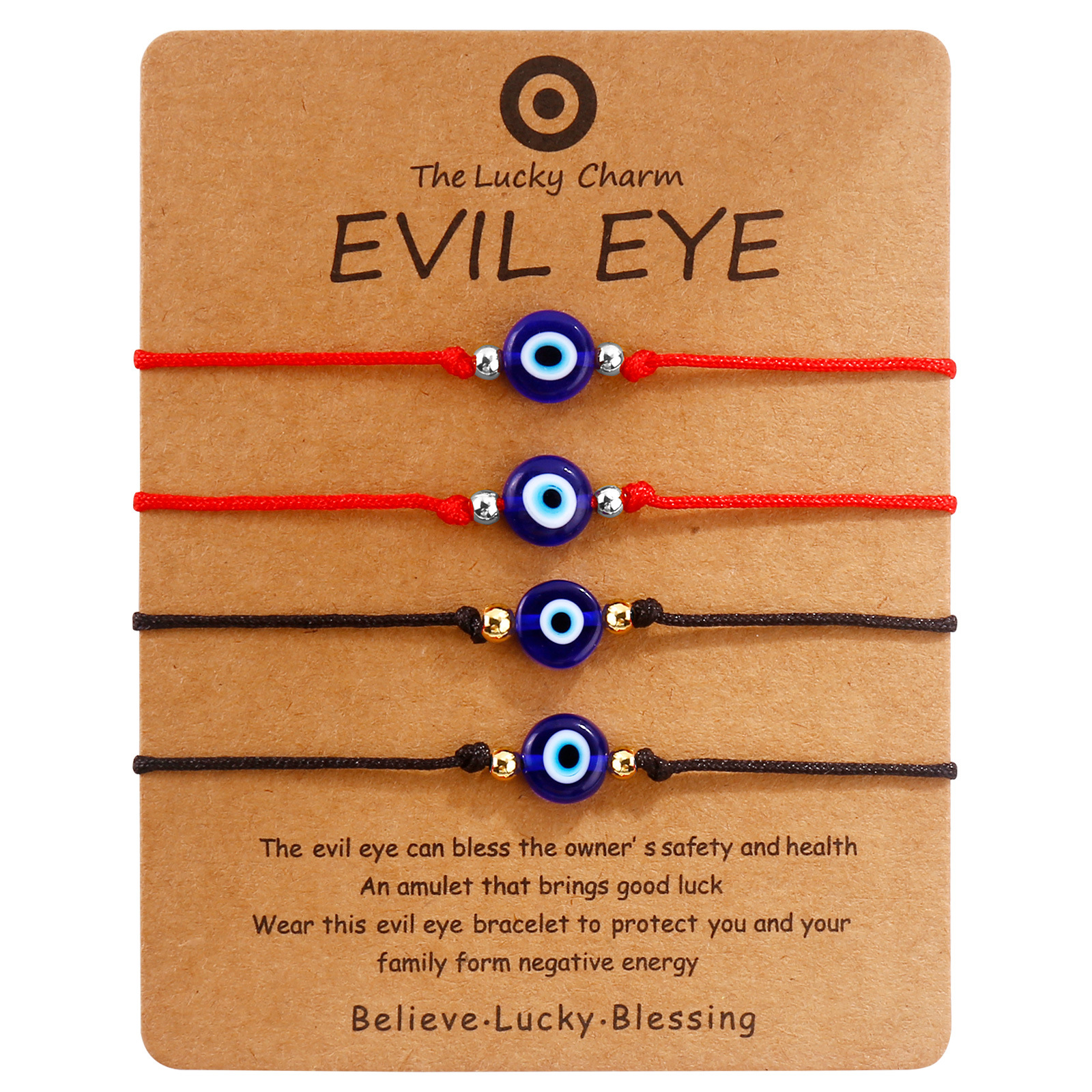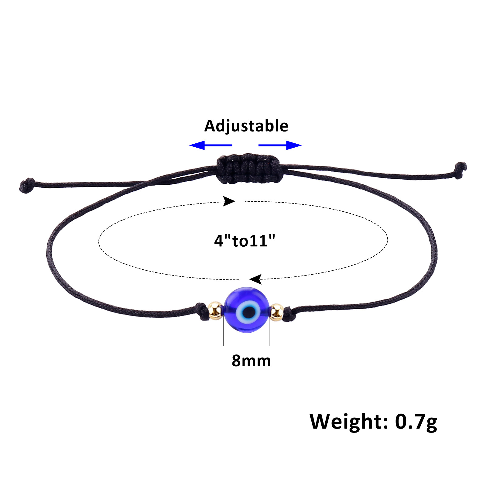 4 black rope sliver beads blue eyes