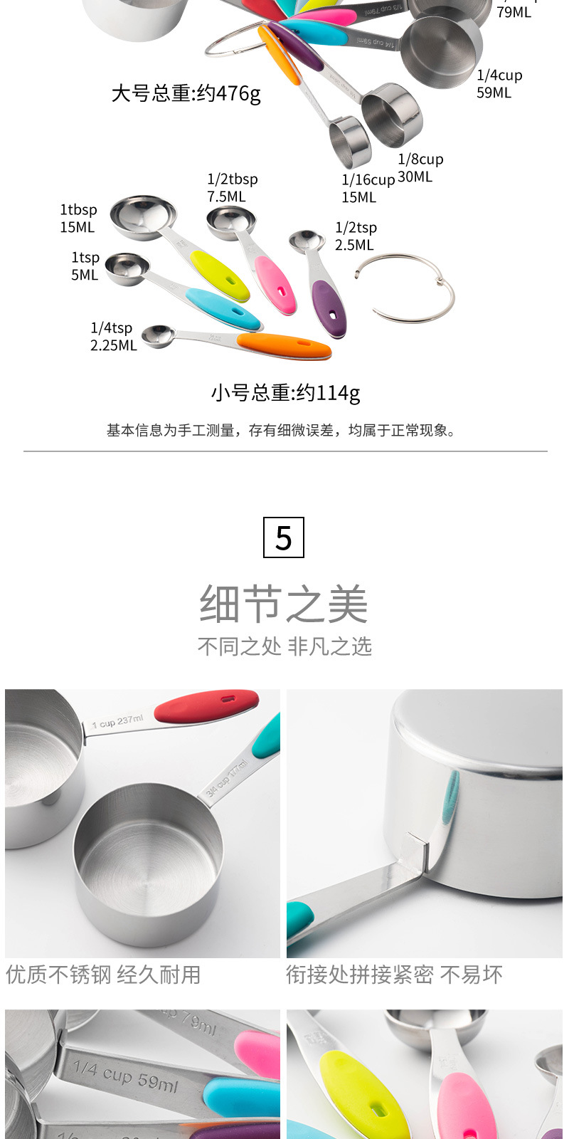 Measuring Cup and Spoon Set in a Box of 10 Pieces: About 460g per set, Color Box Size: 19*9*8cm