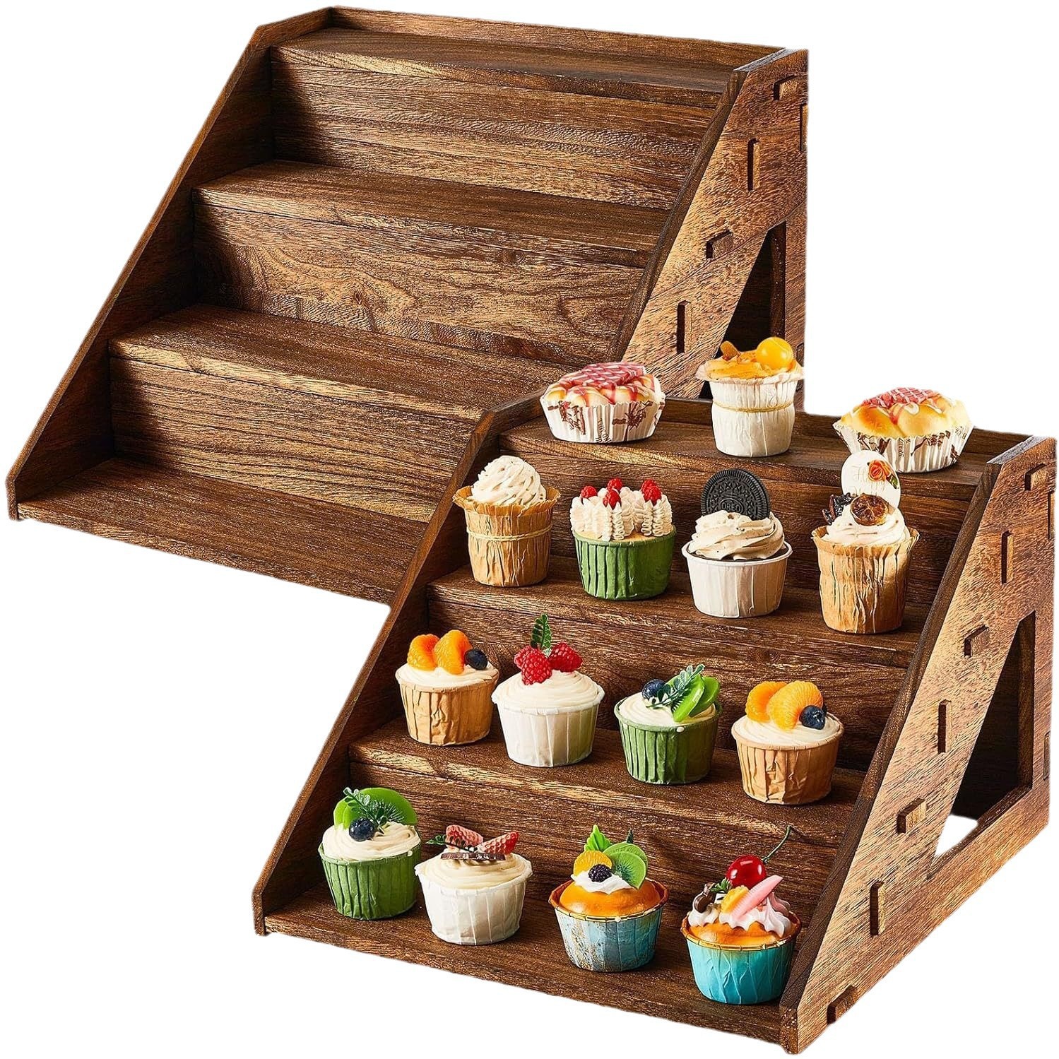 baking shop dessert cake holder uv polish display stand customized ladder shelf wooden table setting
