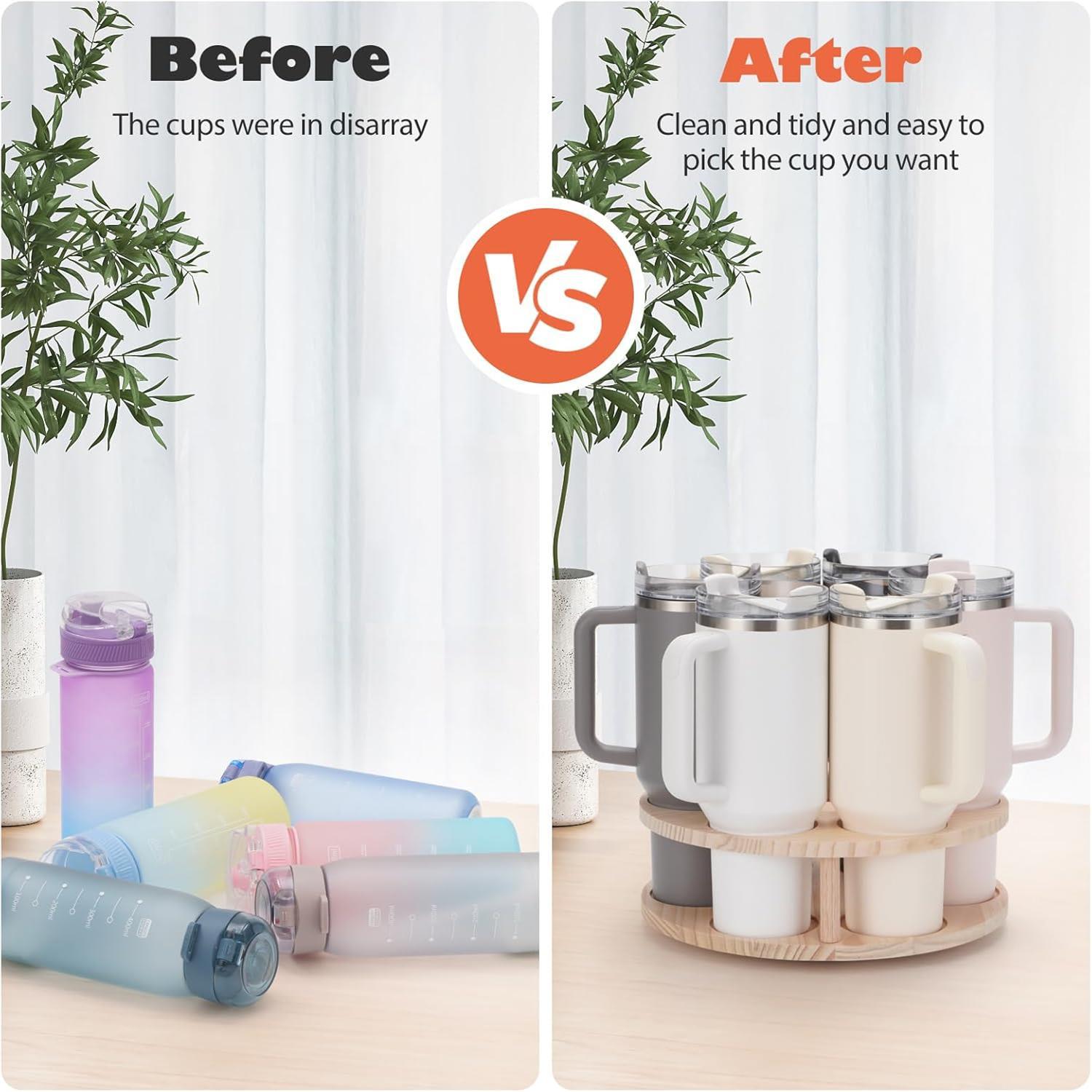 base cross-border mug display rack removable water cup storage rack wooden rotating water bottle rack wooden thermos bottle