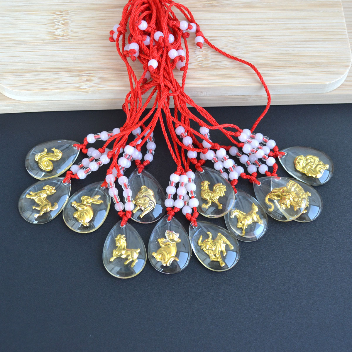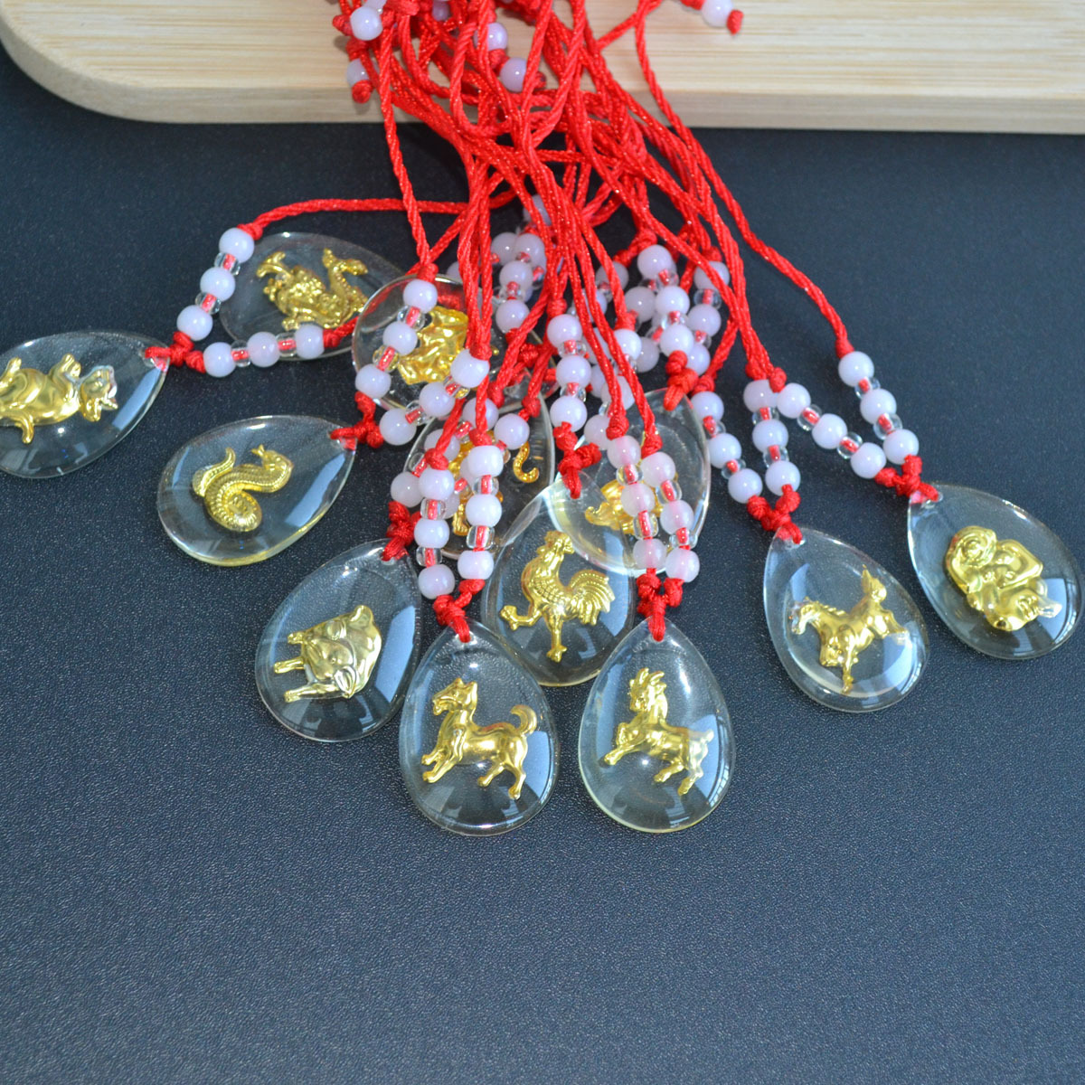 2 h133 small size luminous chicken tied 12 beads red rope