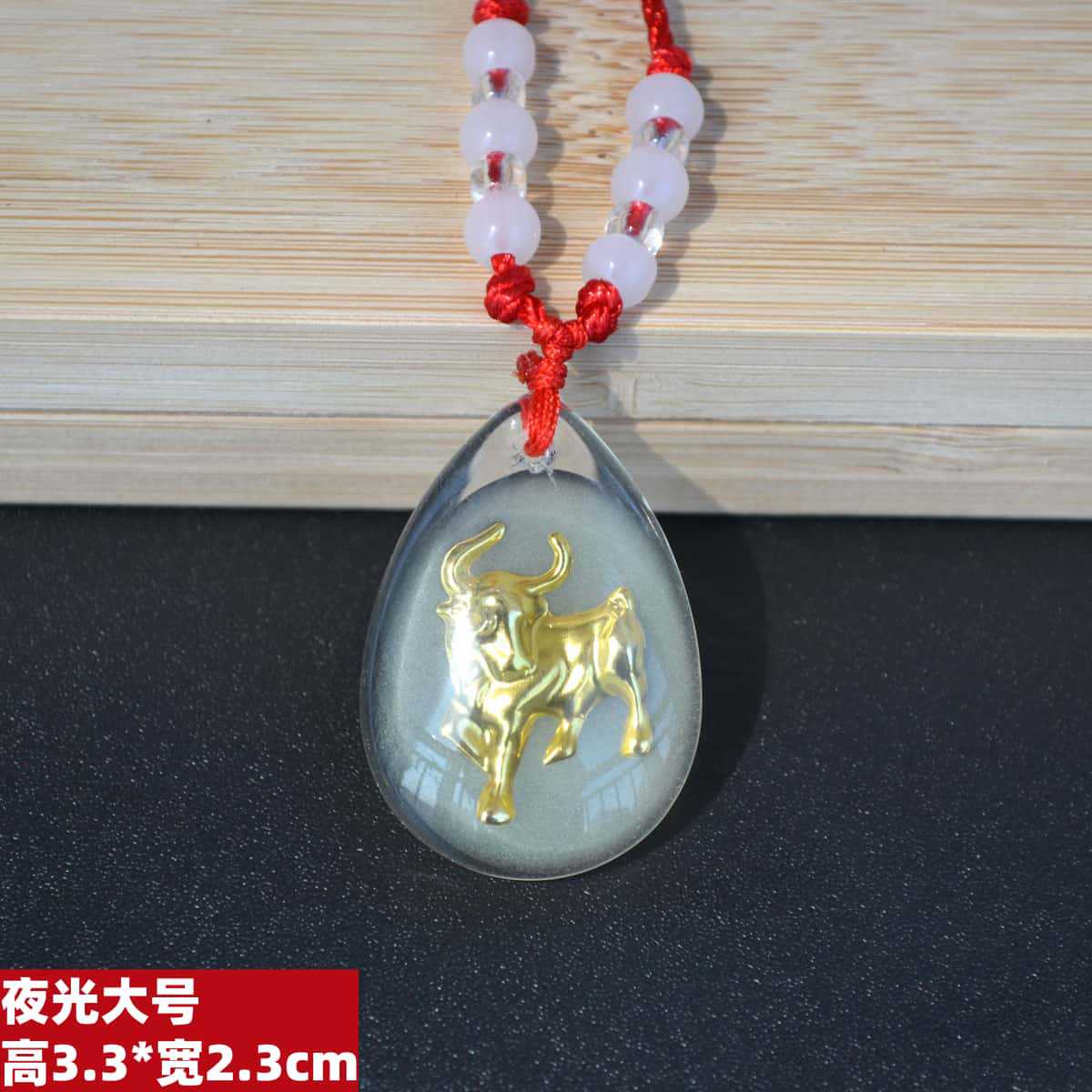 2h27 large luminous cow tied 12 beads red rope