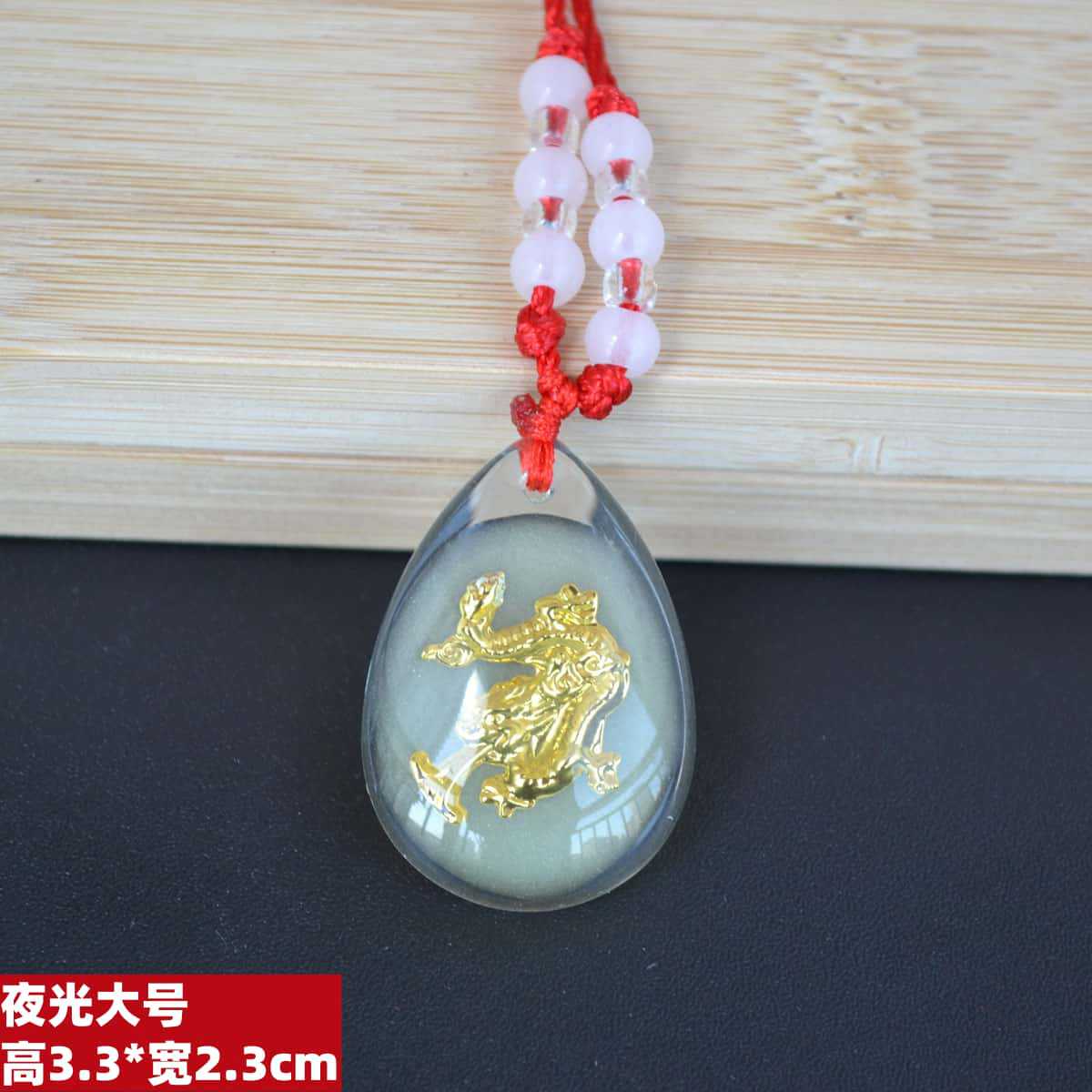 2h30 large luminous dragon tied 12 beads red rope
