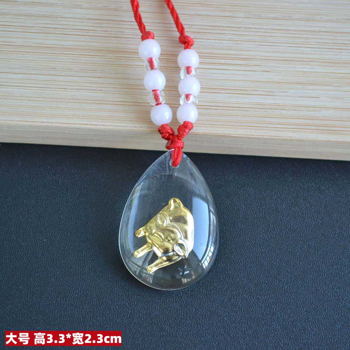 2h37 large luminous pig tied 12 beads red rope