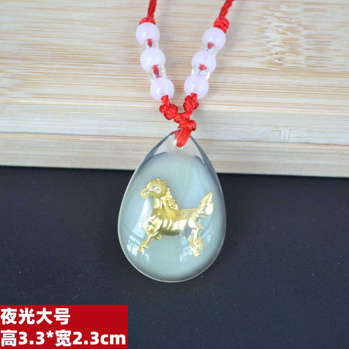 2h32 large luminous horse tied 12 beads red rope