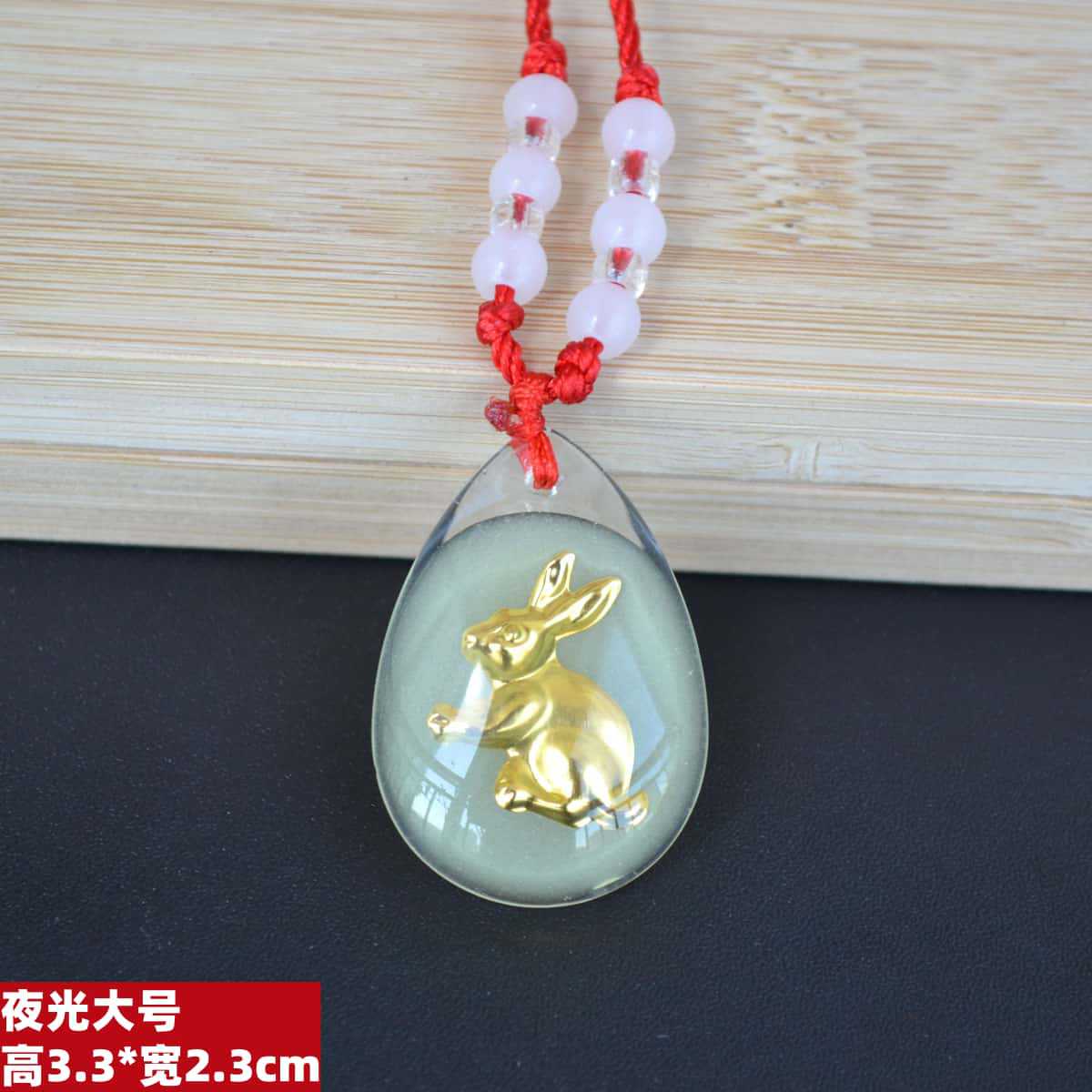 2h29 large luminous rabbit tied 12 beads red rope