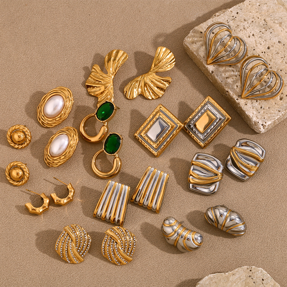 striped trapezoidal stud earrings-two-tone