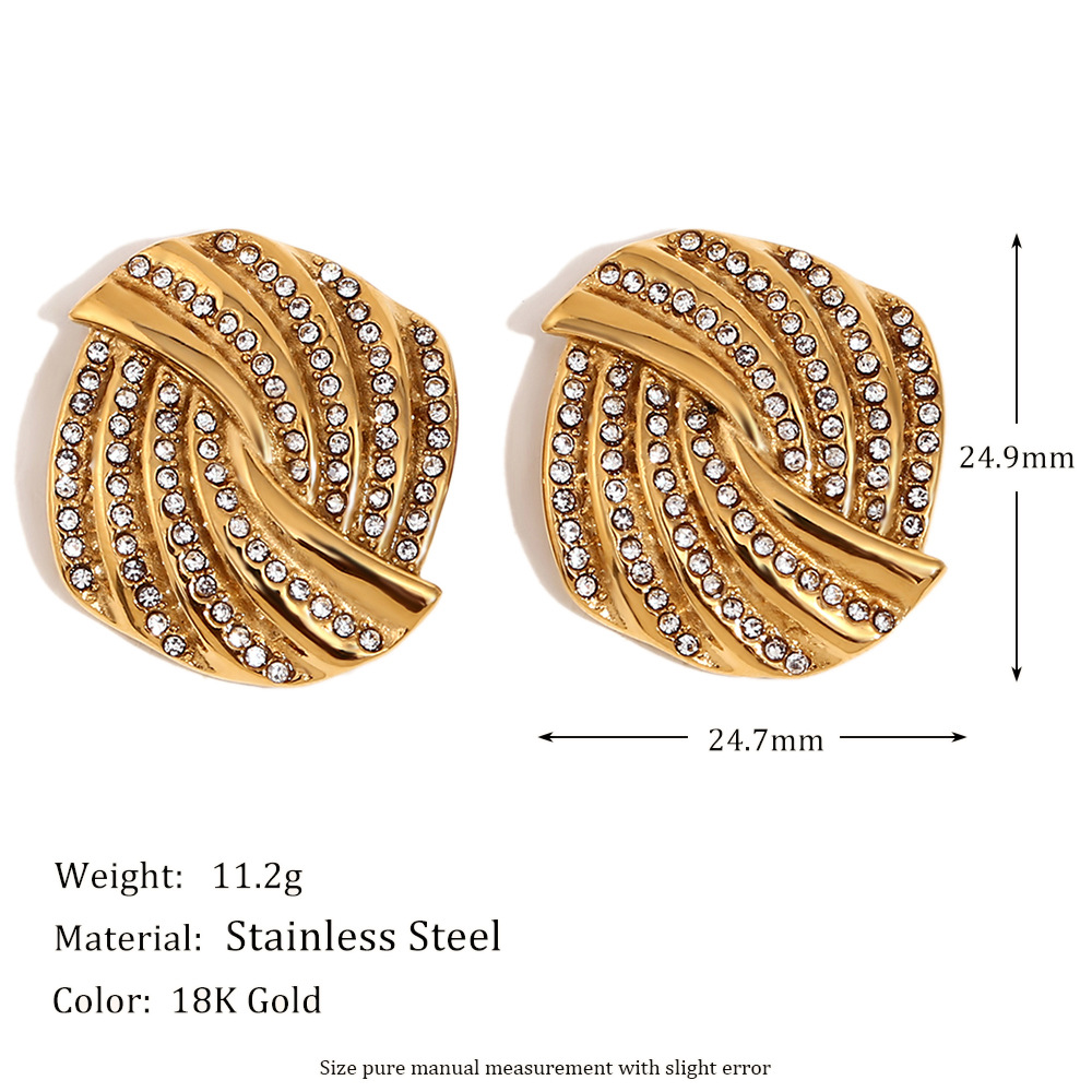 geometric cross feather spot drill stud earrings-gold