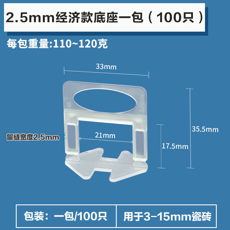 heightened transparent base 2.5mm(100 pcs, suitable for 12-23mm tiles) * pp