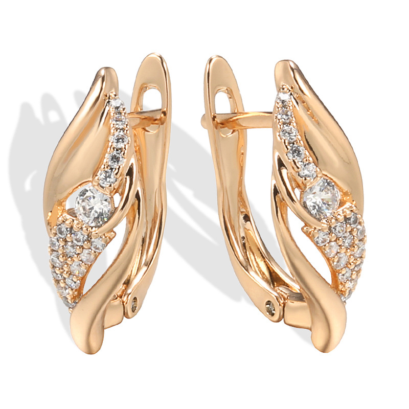 yiwu small commodity elegant earrings 585 rose gold zircon geometric earrings cross-border e-commerce jewelry wholesale supply