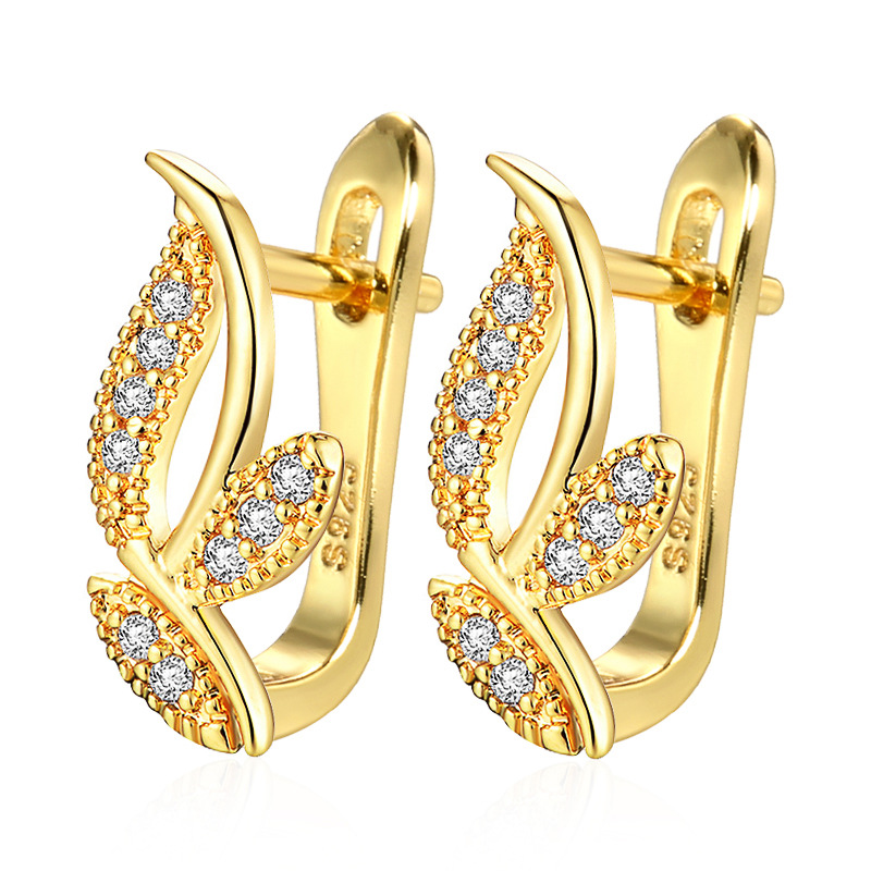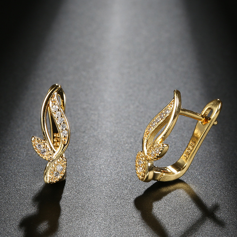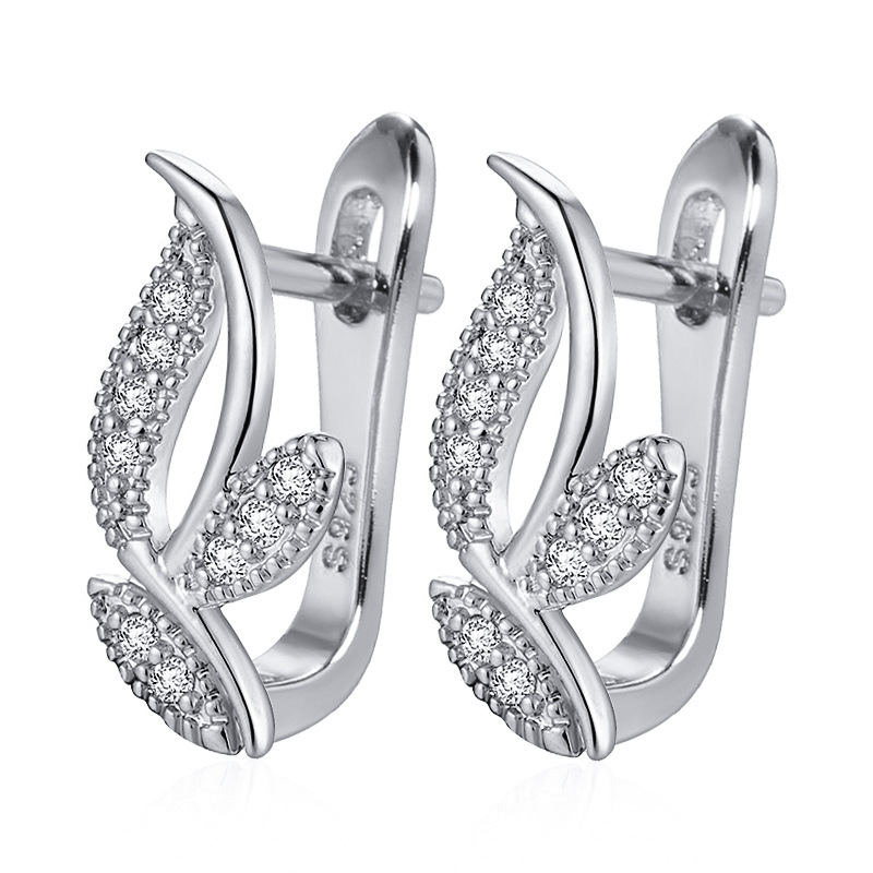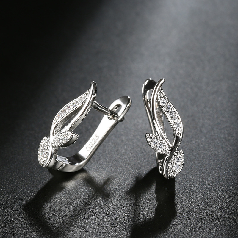wish hot sale european and american fashion minimalist earrings micro inlaid zircon diamond grass versatile personality hipster earrings wholesale