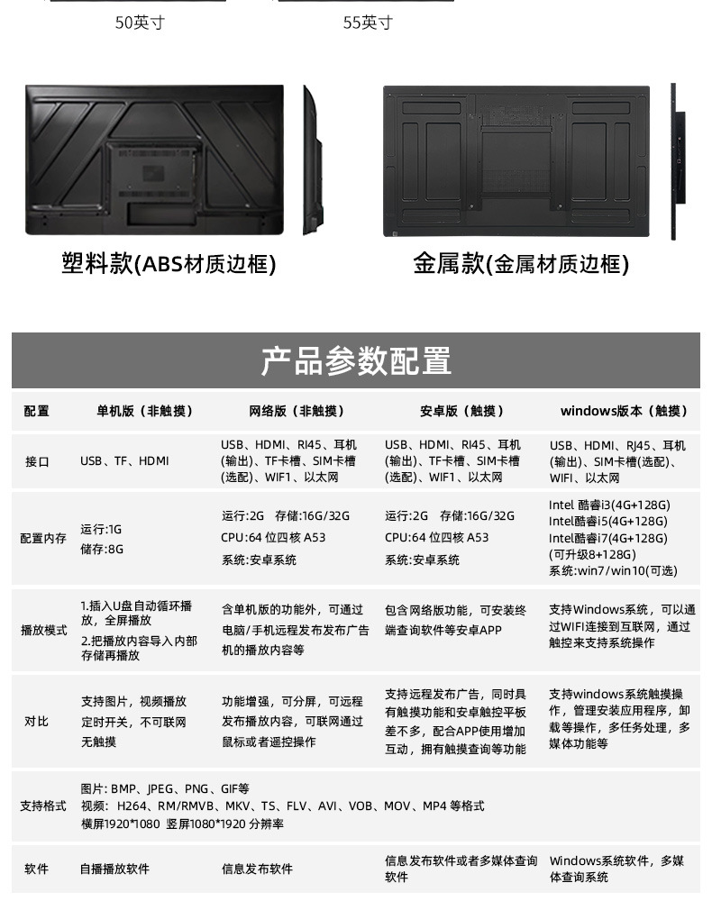 | 50-inch wall-mounted metal network edition (with tempered glass) | CN¥ 2350.0 | 1985 table available |