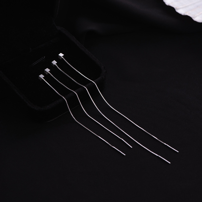 silver needle square ear lines women's summer simple cold style long tassel square earrings sleep without picking earrings show face