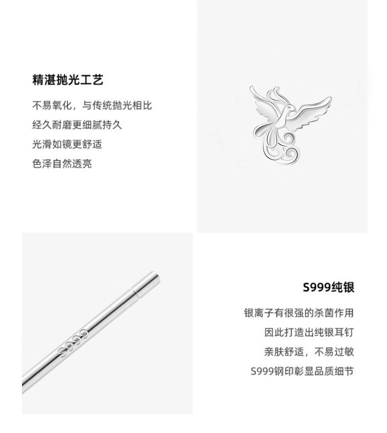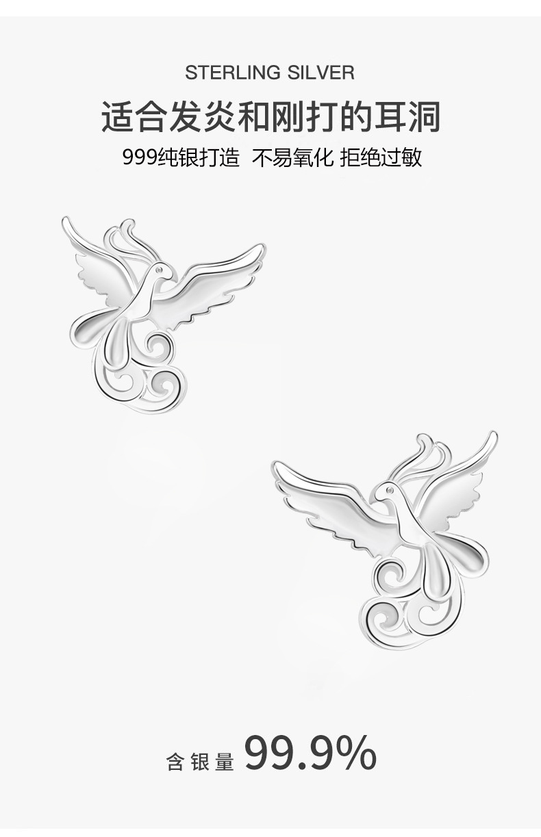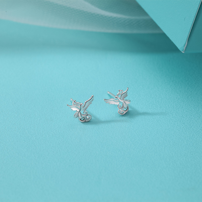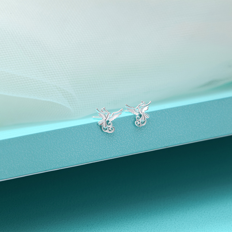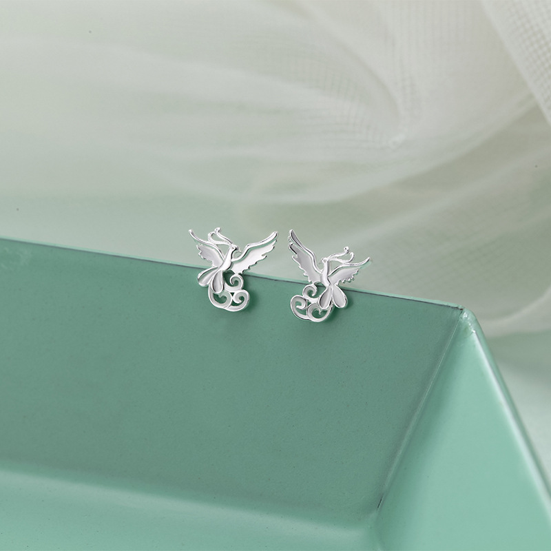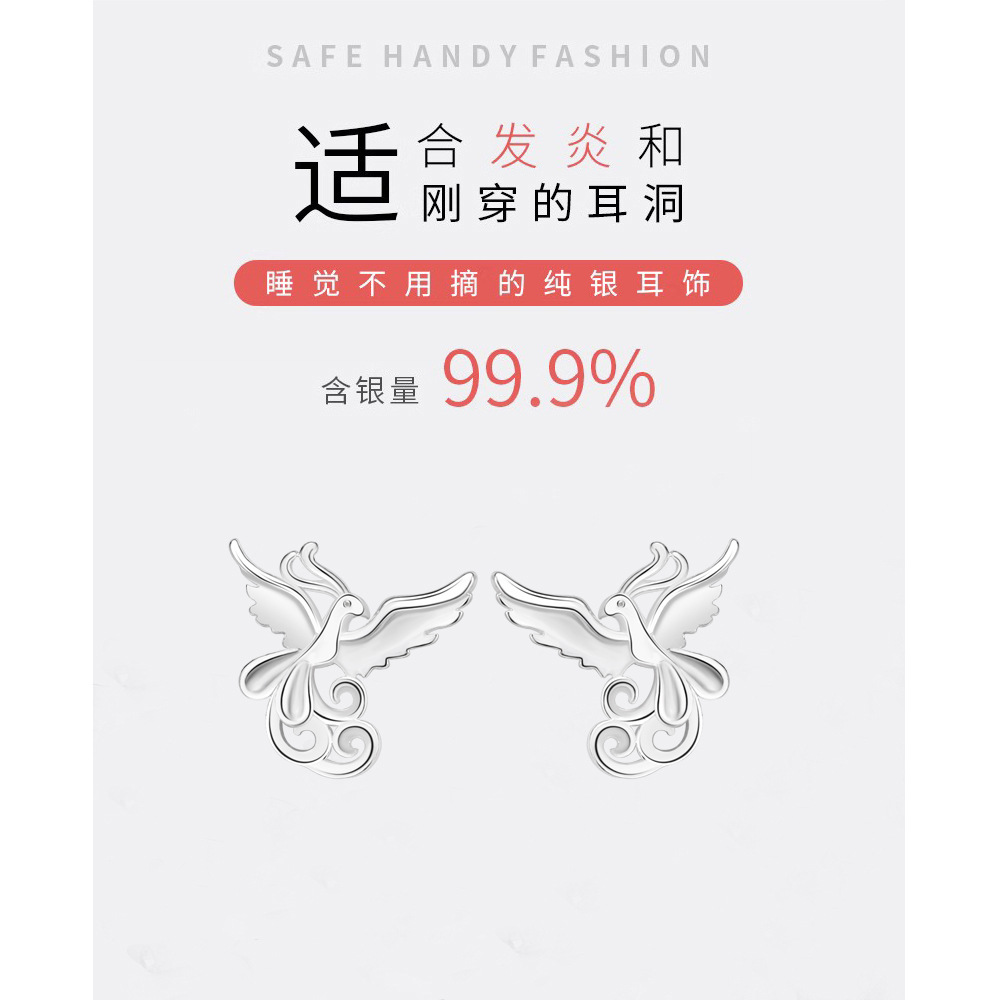 s999 sterling silver stud earrings phoenix national style simple and fresh ear-caring graceful earring bone nail mori style cute earrings