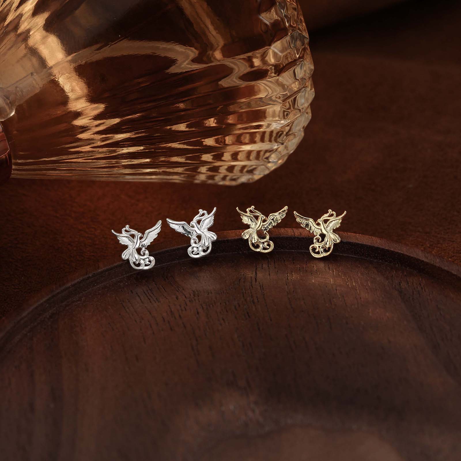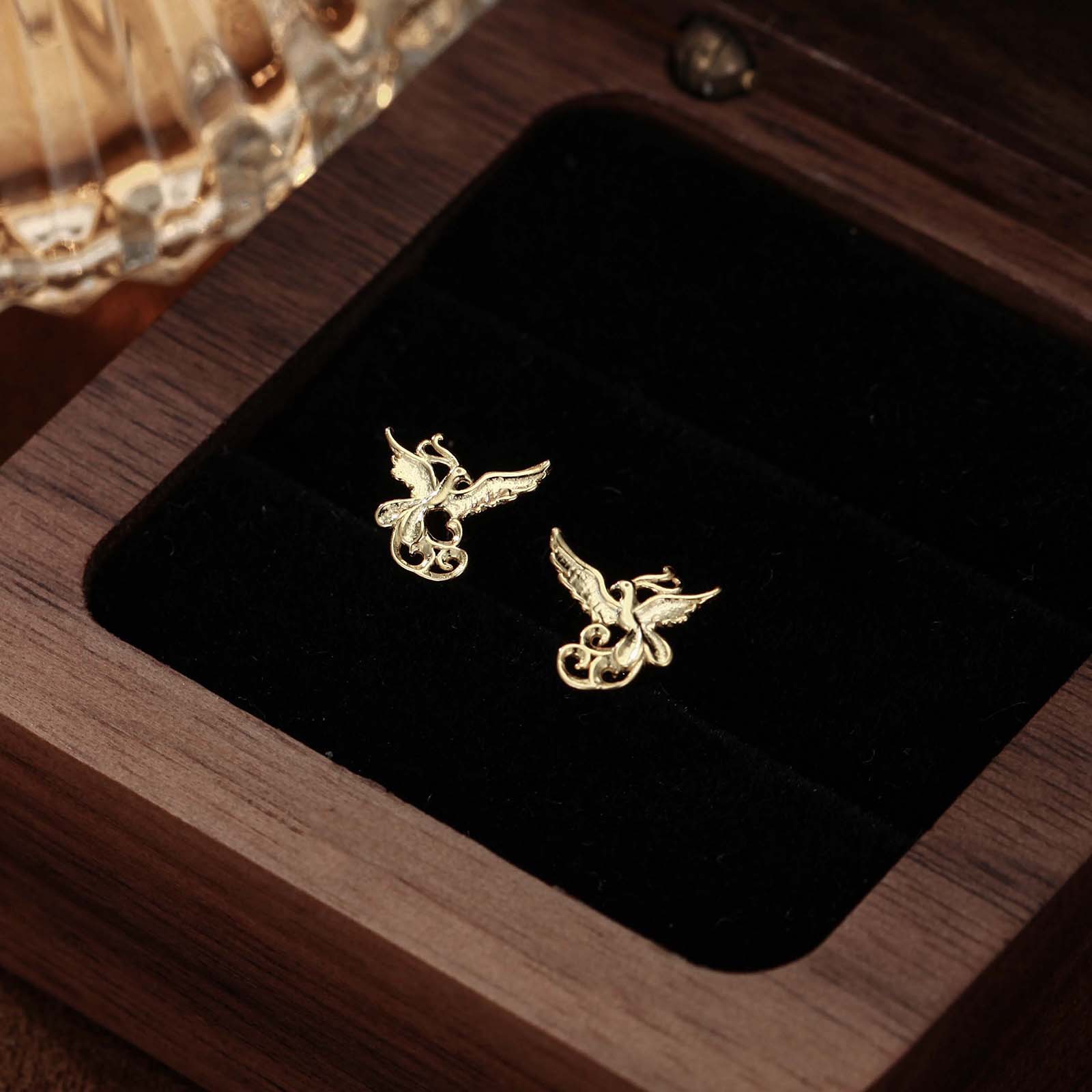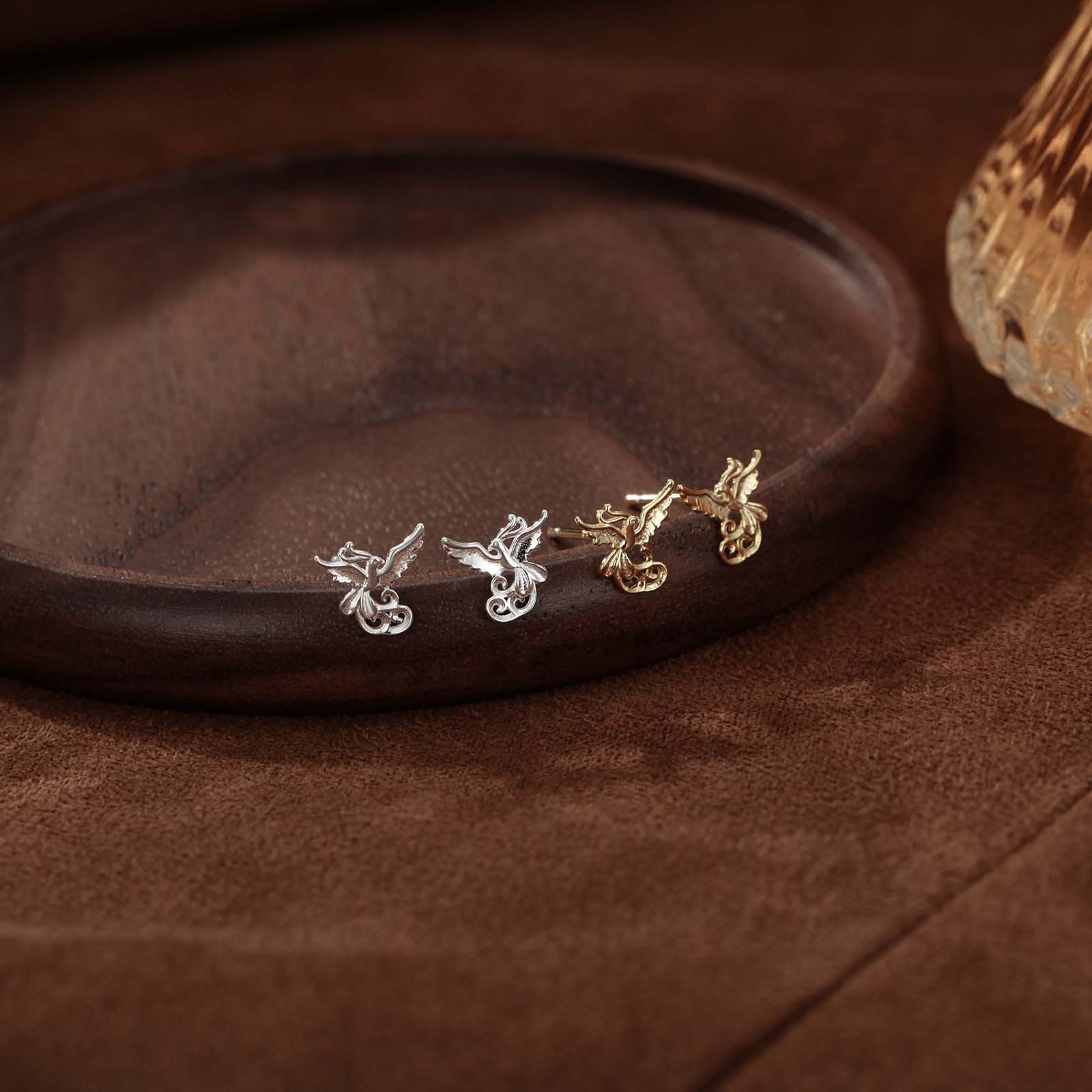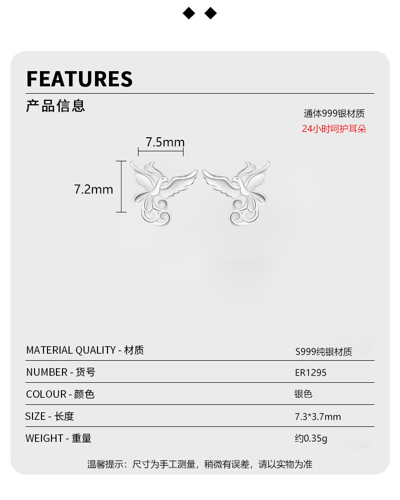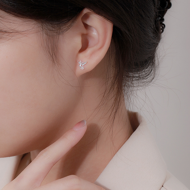 s999 sterling silver stud earrings phoenix national style simple and fresh ear-caring graceful earring bone nail mori style cute earrings