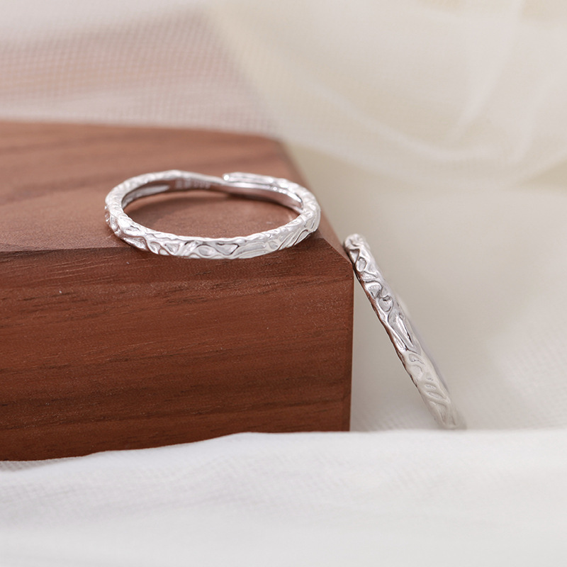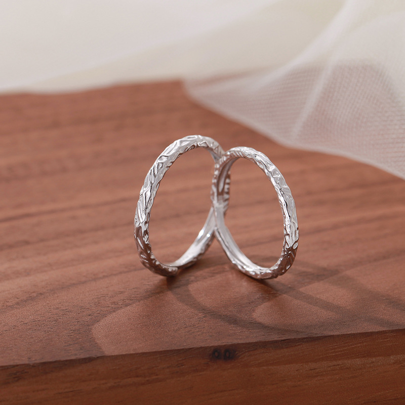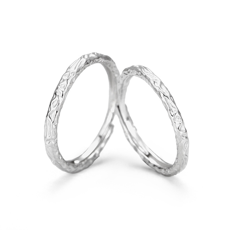 s999 sterling silver ring candy couple couple rings internet celebrity affordable luxury style irregular texture pure silver ring hand jewelry