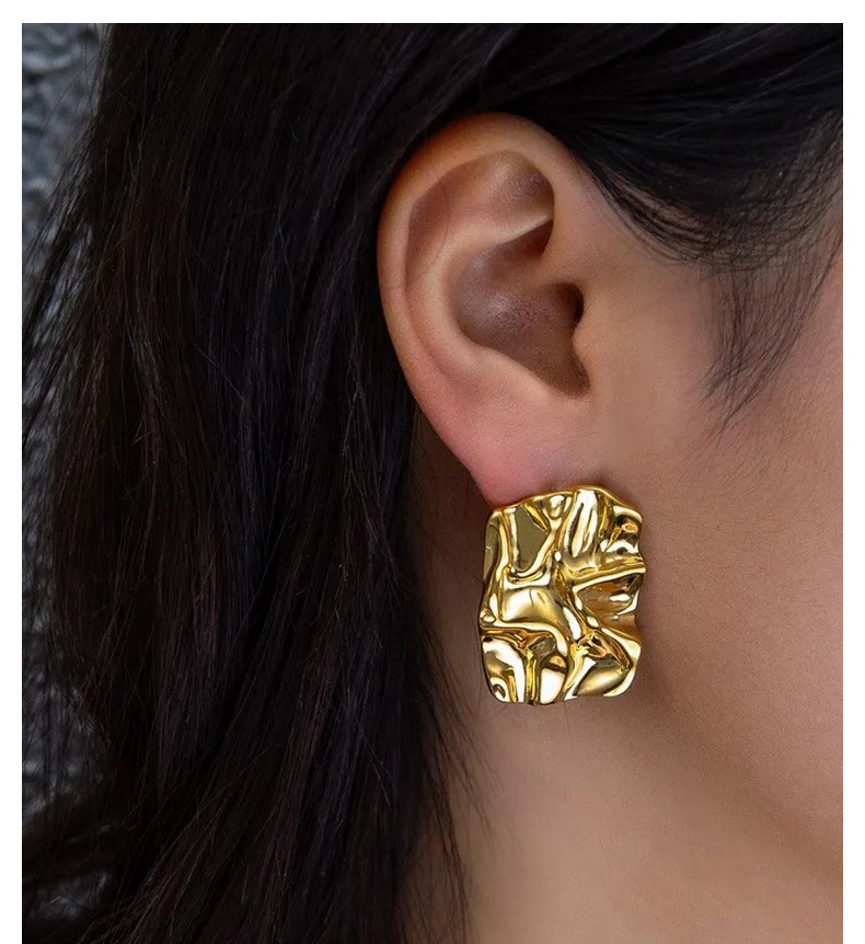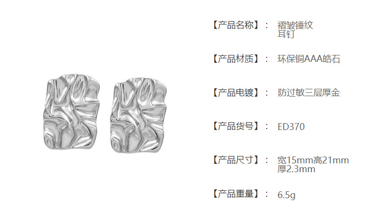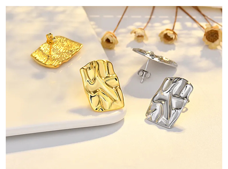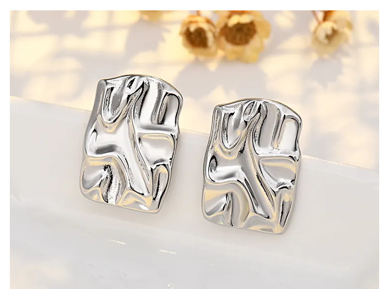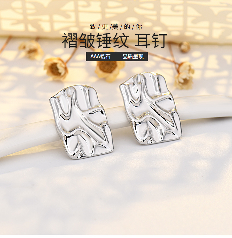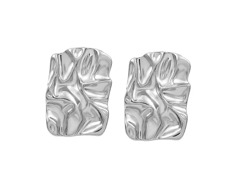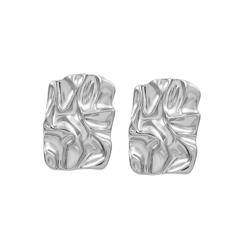 pleated hammered stud earrings (white gold plated color retention)
