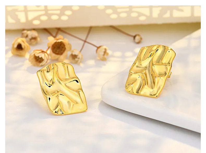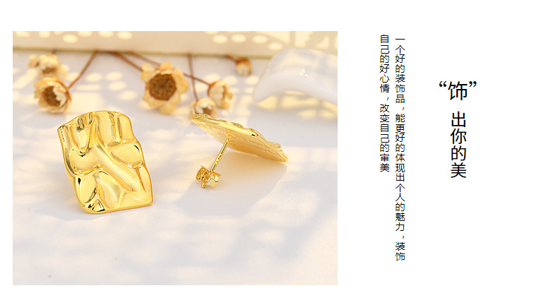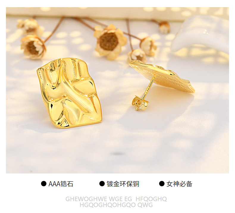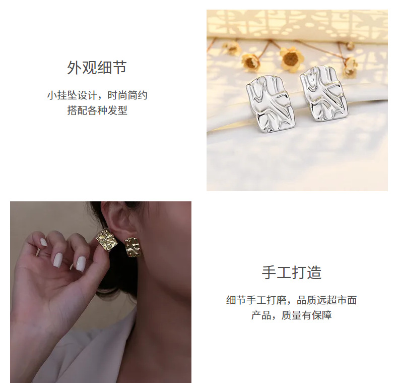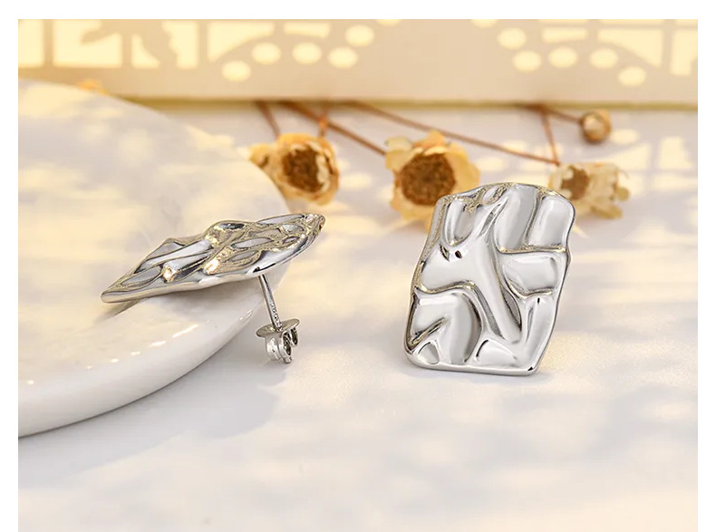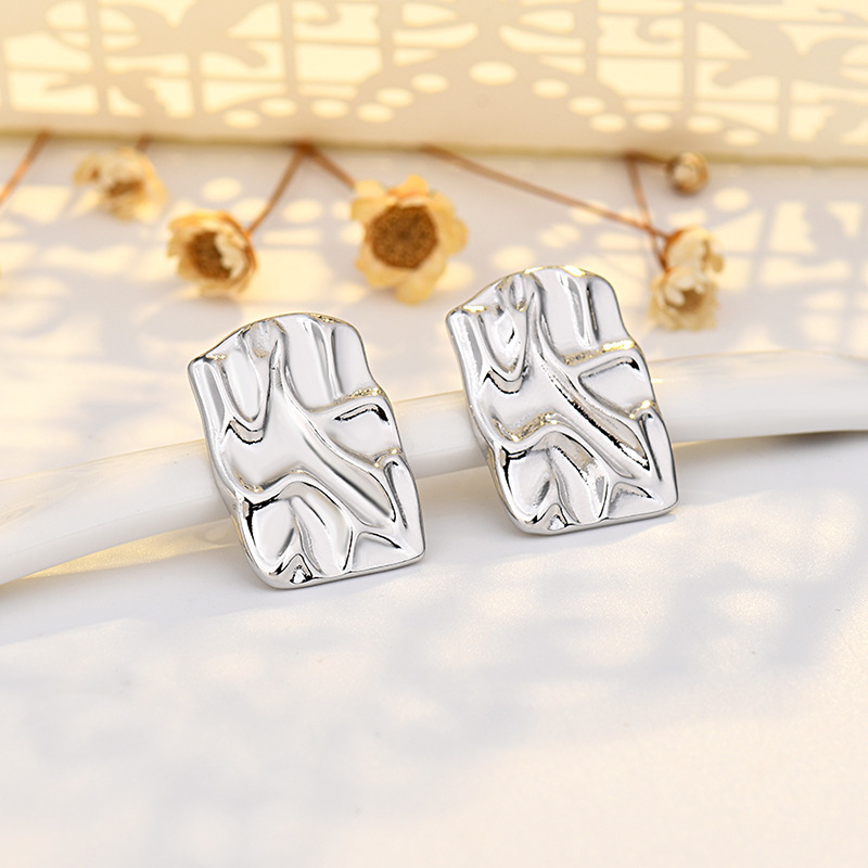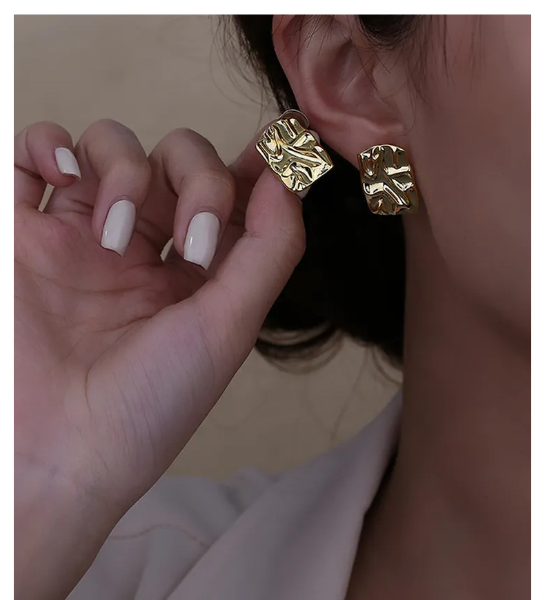pleated hammered stud earrings (white gold plated color retention)
