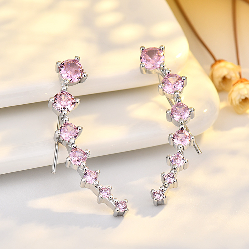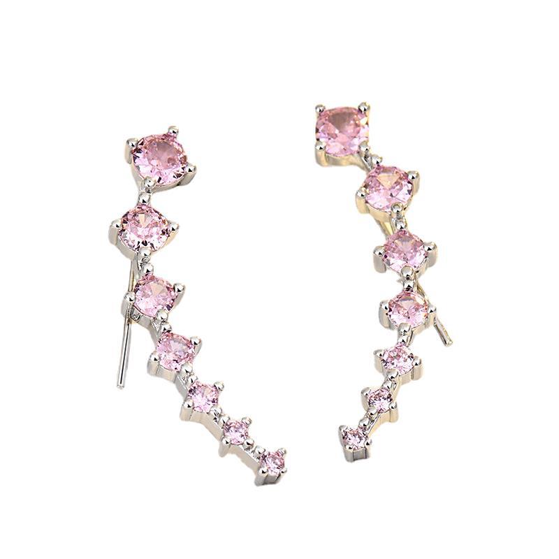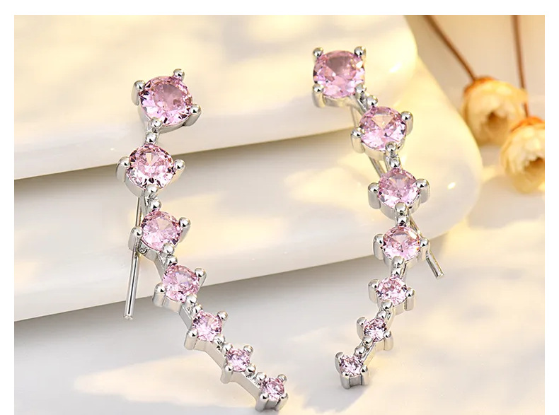seven star earrings (pink zirconium) white gold plated color retention