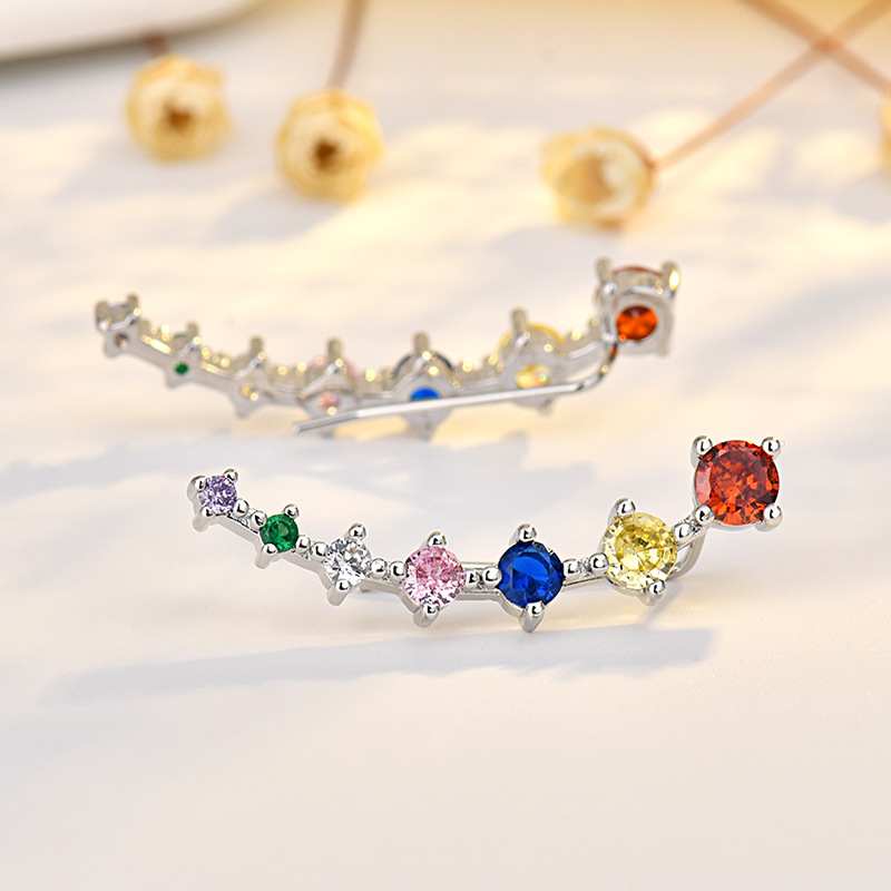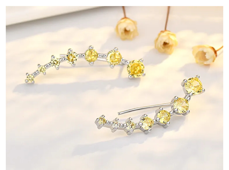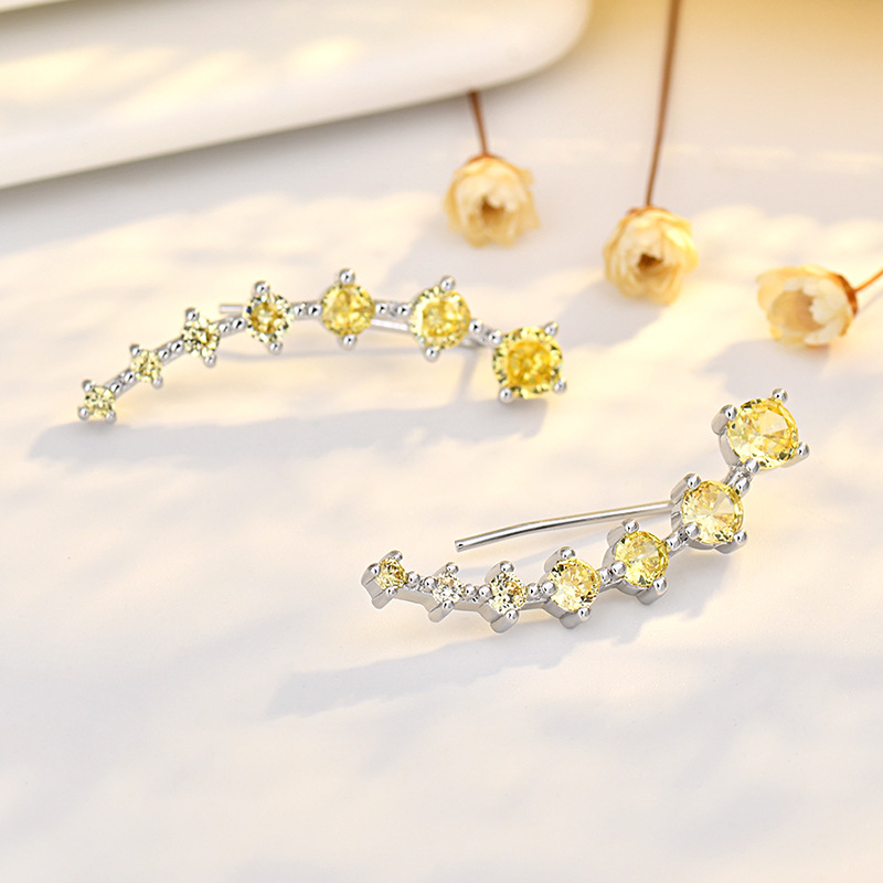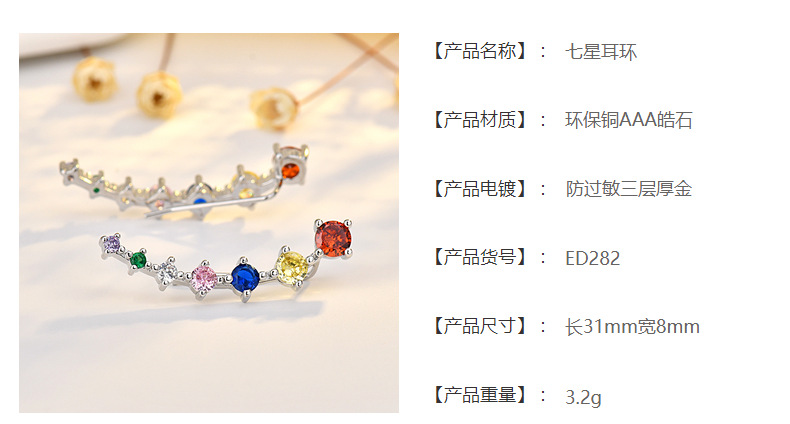 seven star earrings (golden zirconium) white gold plated color retention