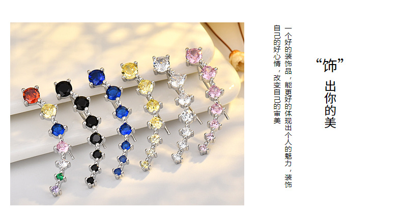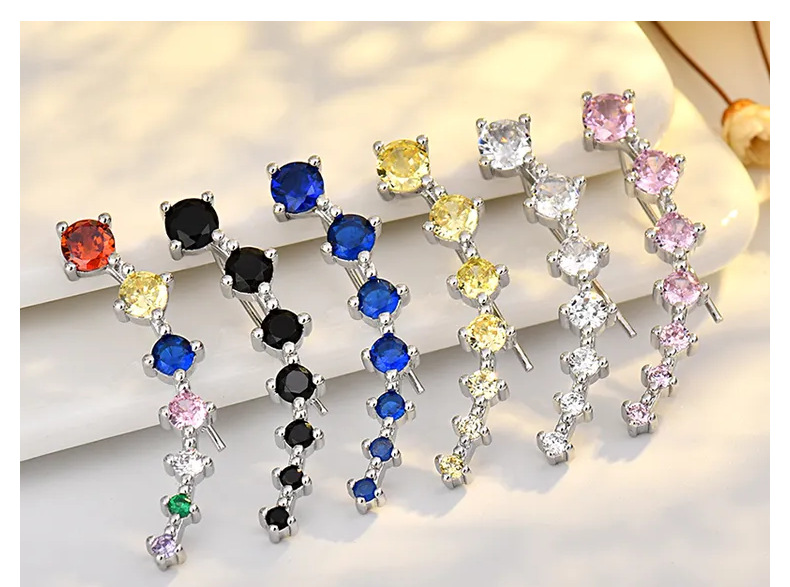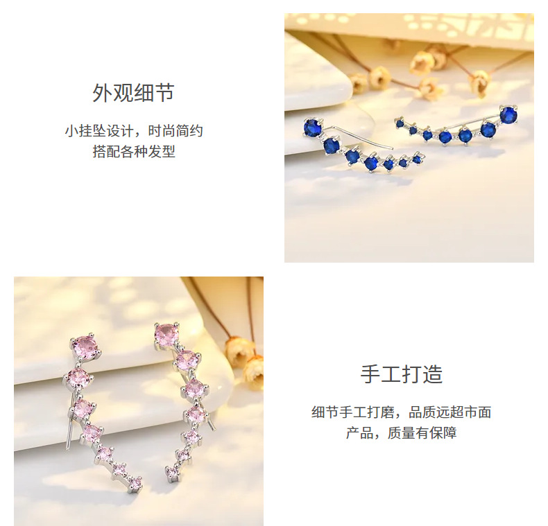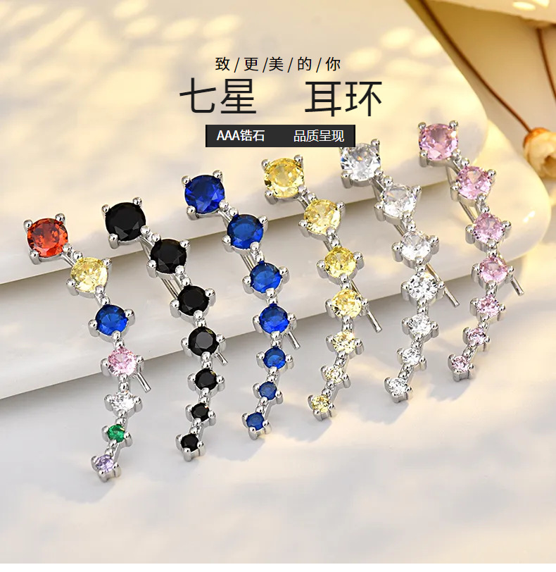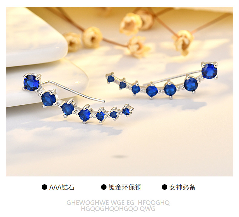 seven star earrings (blue zirconium) white gold plated color retention