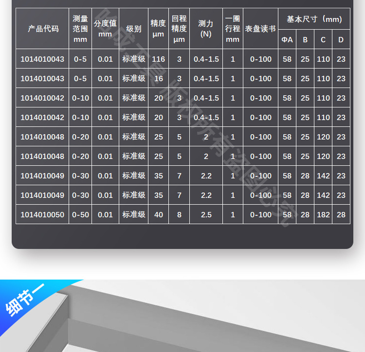percentage dial gauge range 0-50mm accuracy 0.01