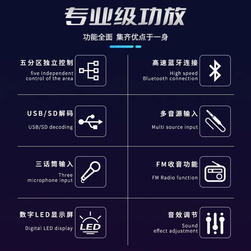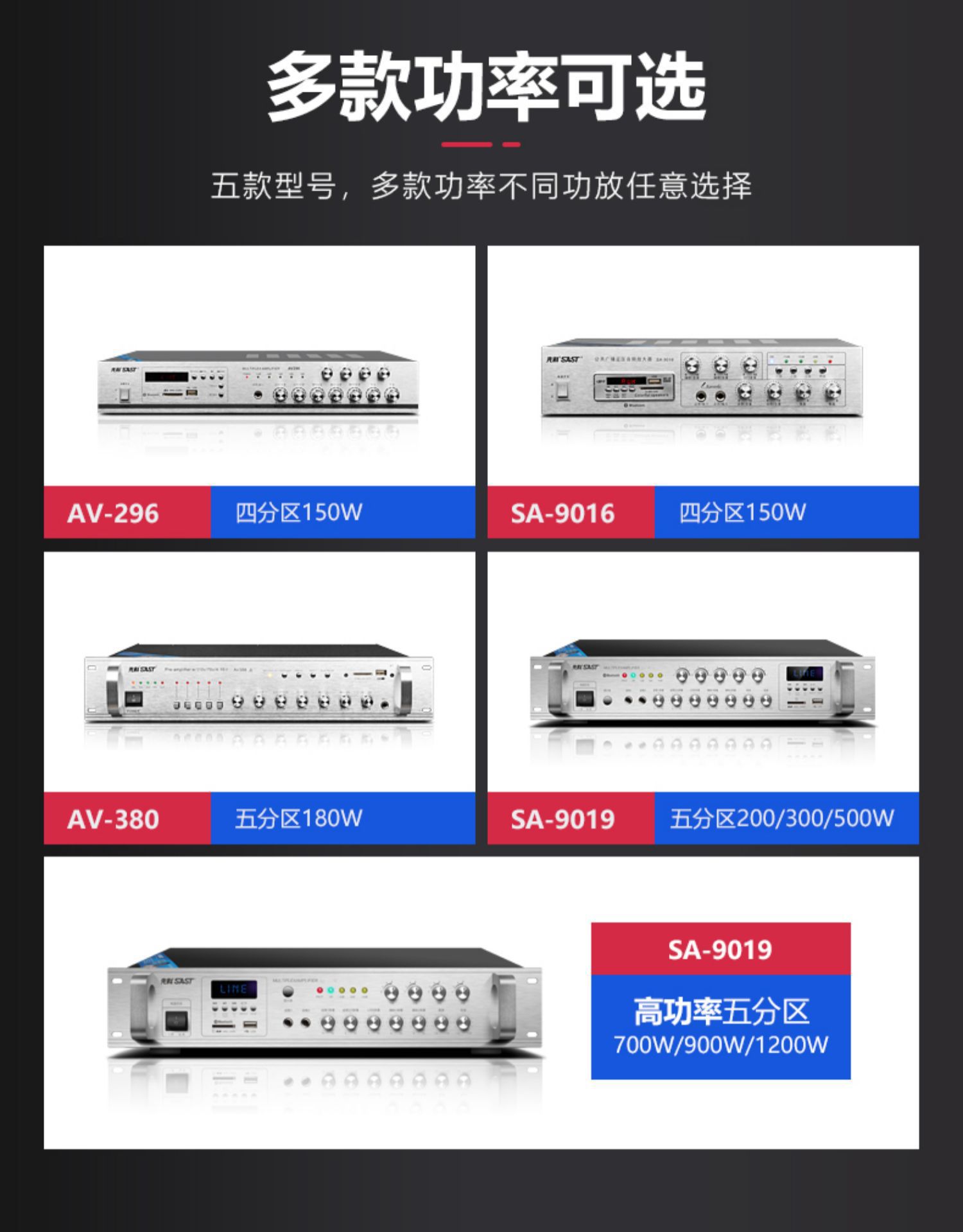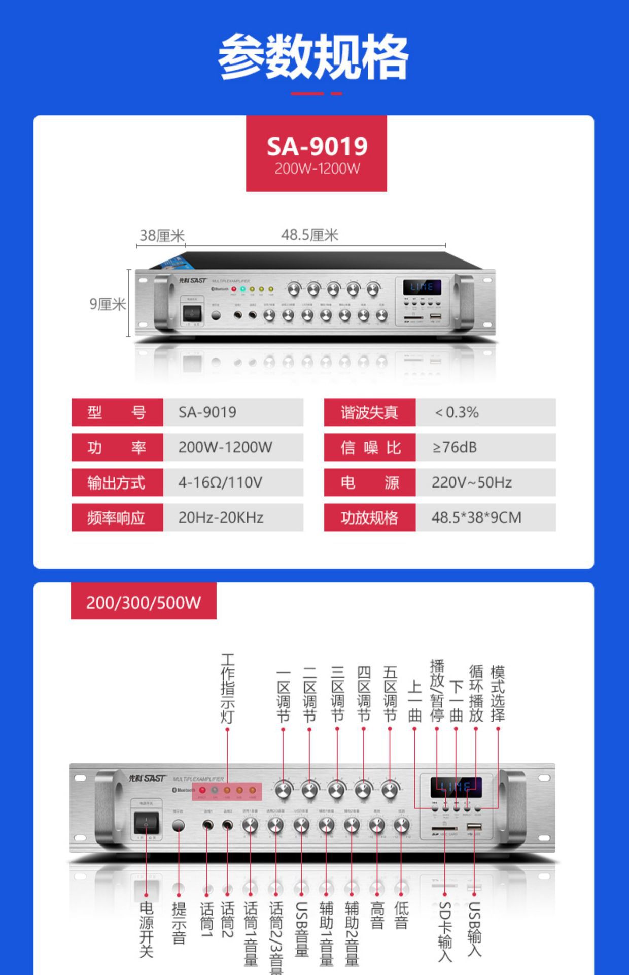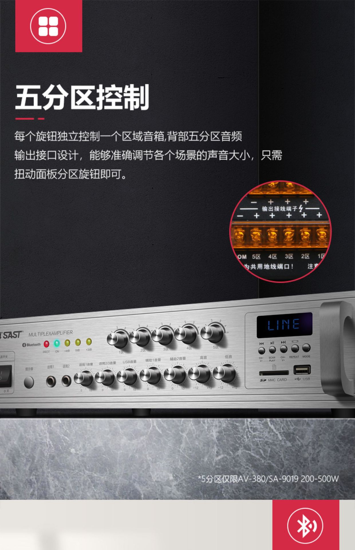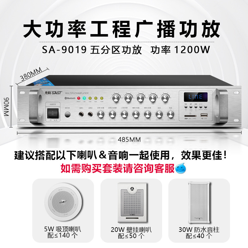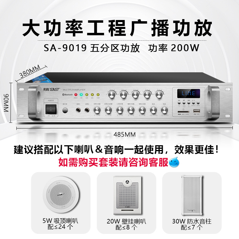 sa-9019 300w five-zone adjustment bluetooth amplifier