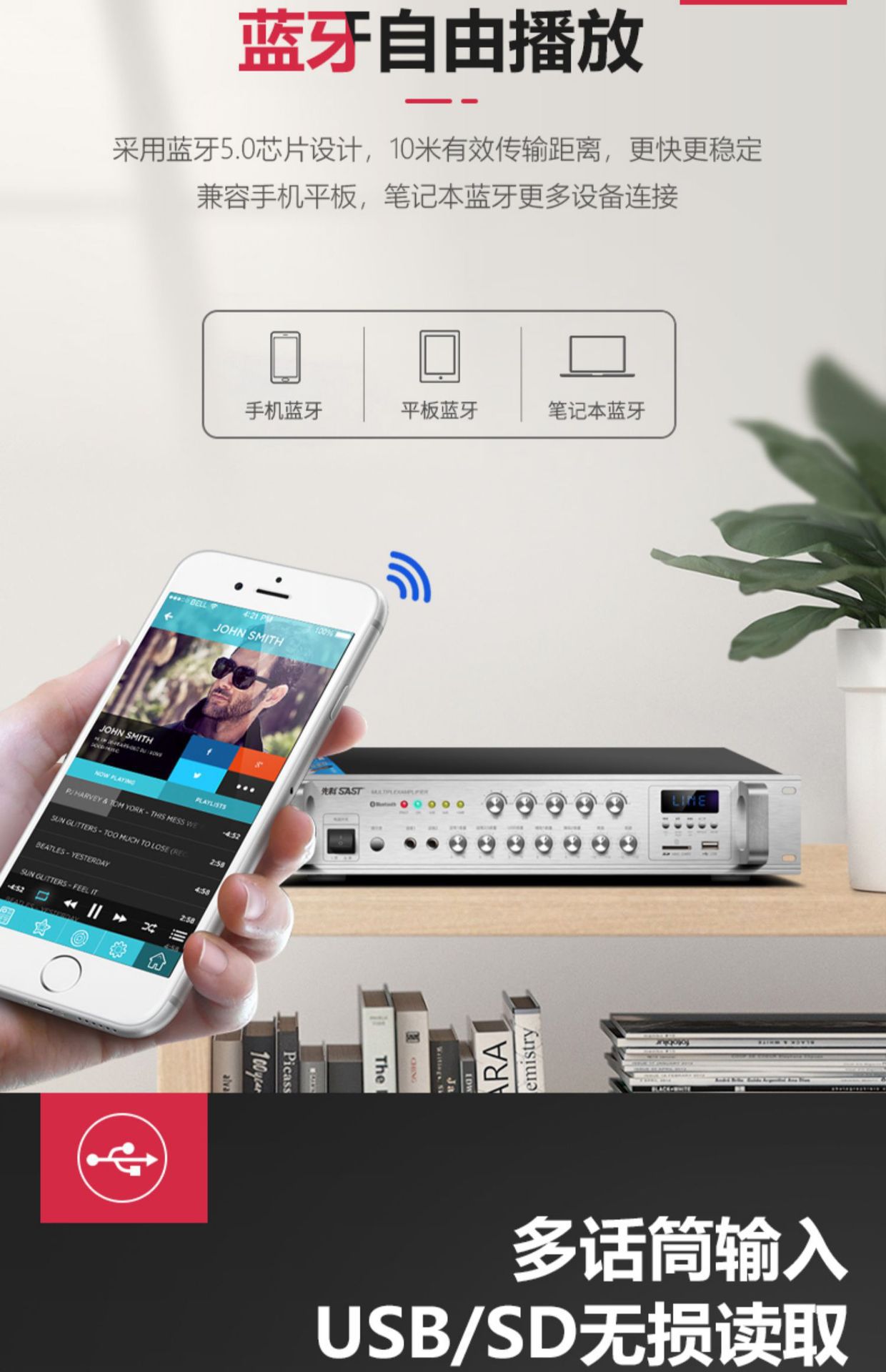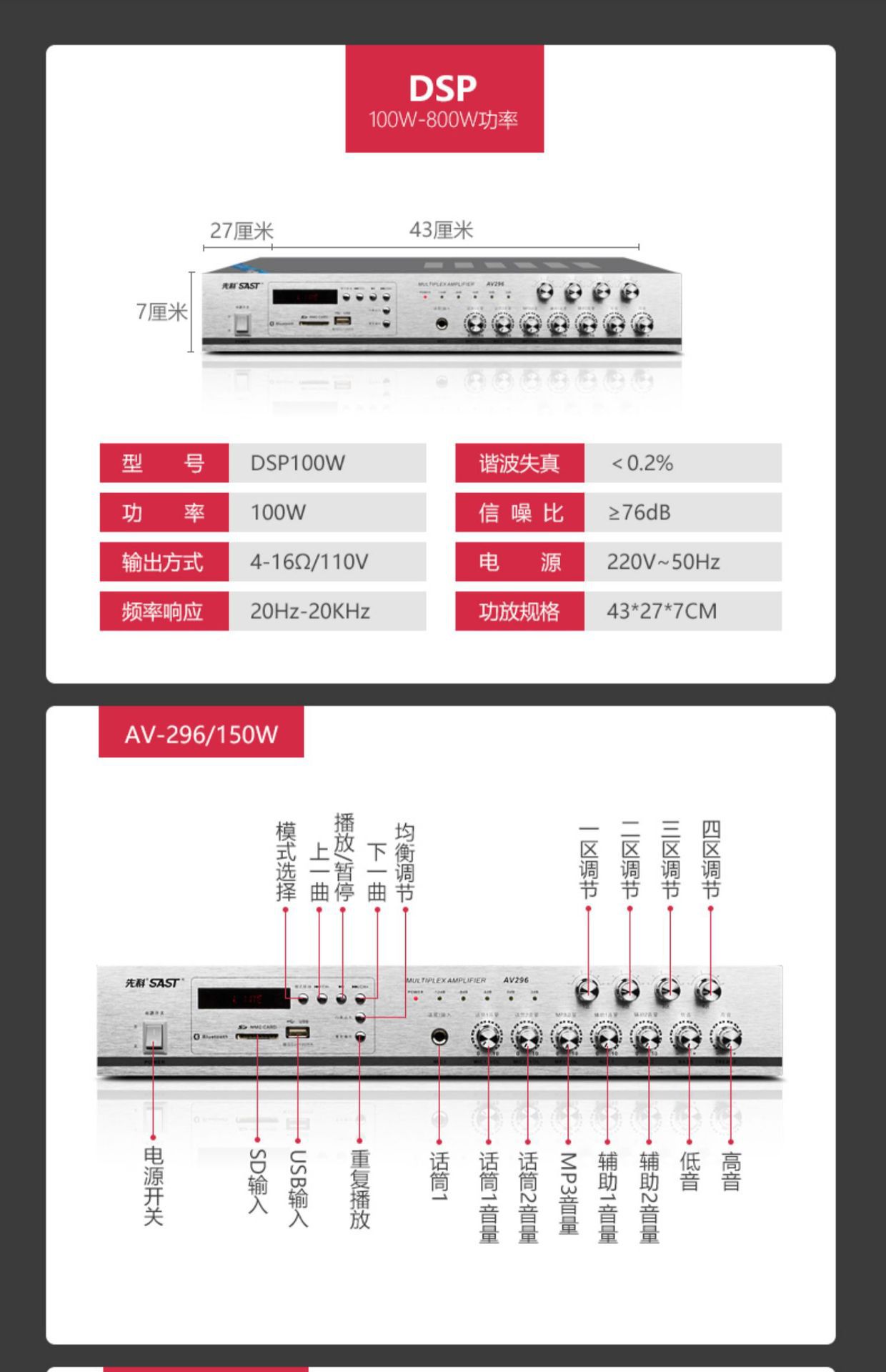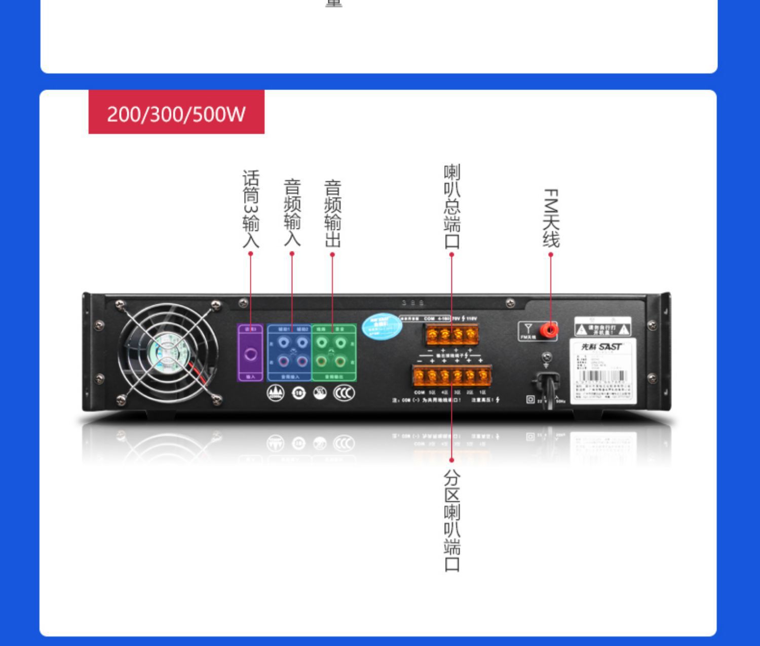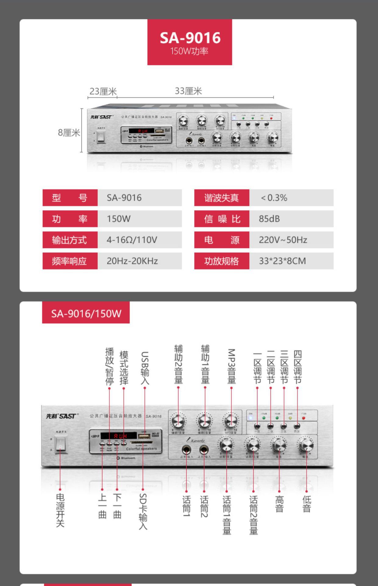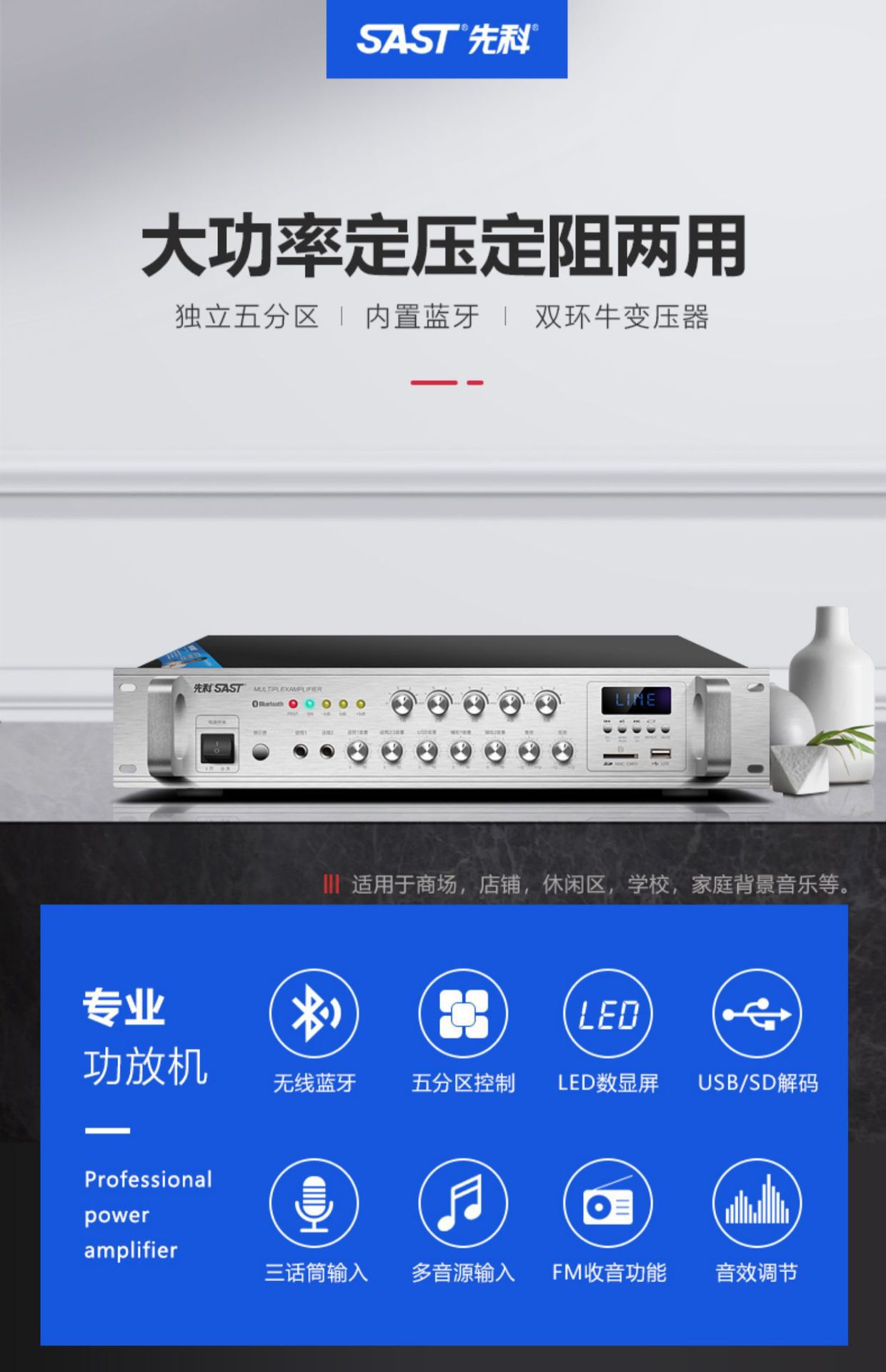sa-9019 300w five-zone adjustment bluetooth amplifier