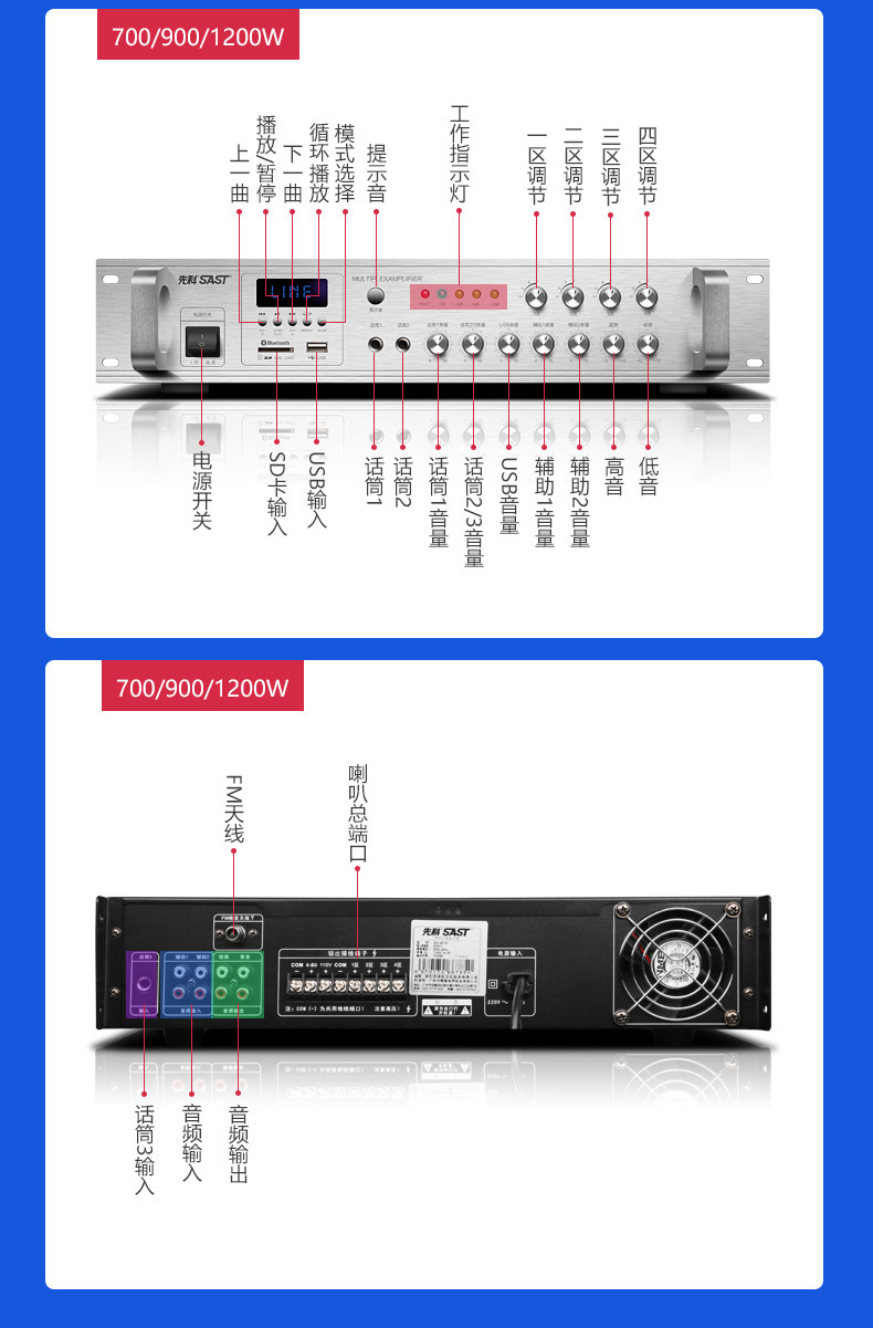 sa-9019 700w five-zone adjustment bluetooth amplifier
