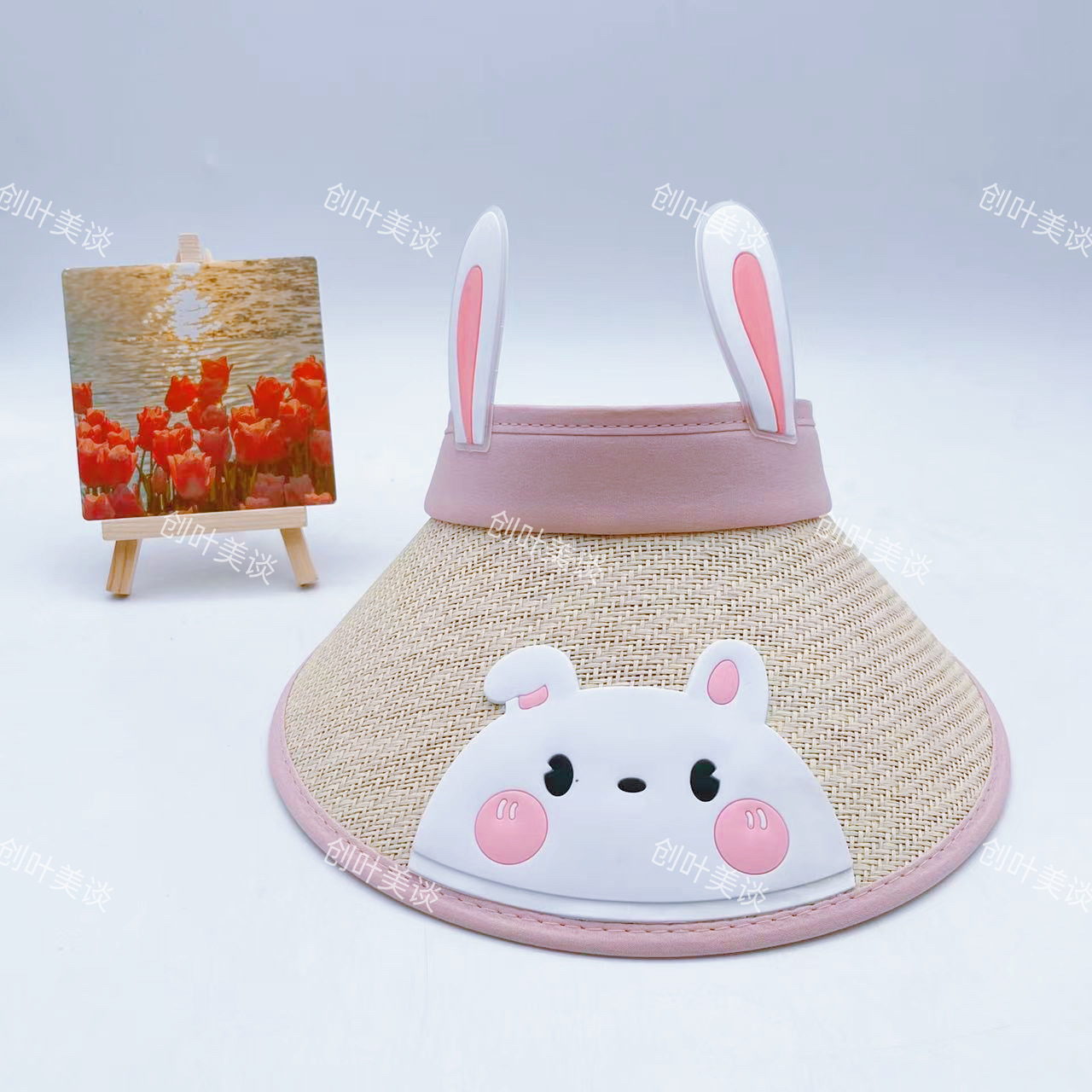 cartoon straw-pink bunny