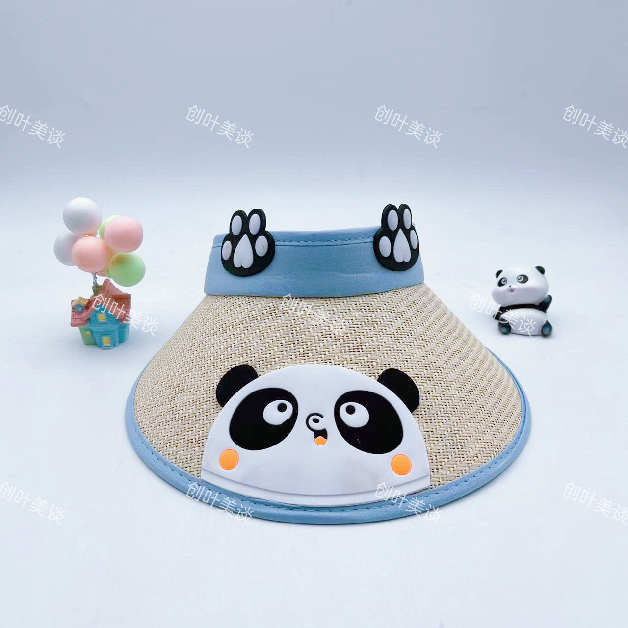 cartoon straw-light blue panda