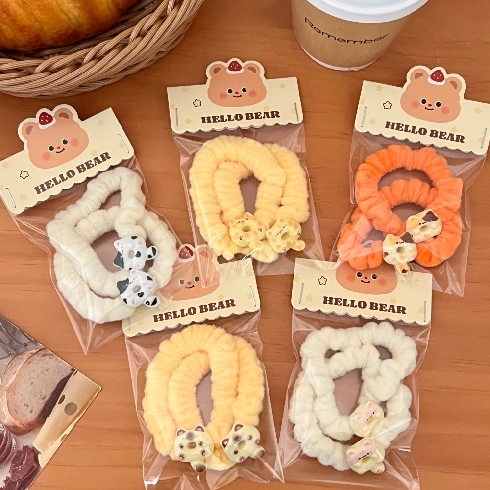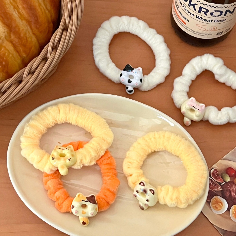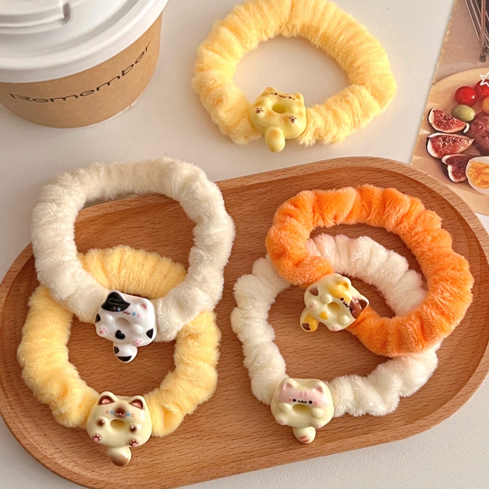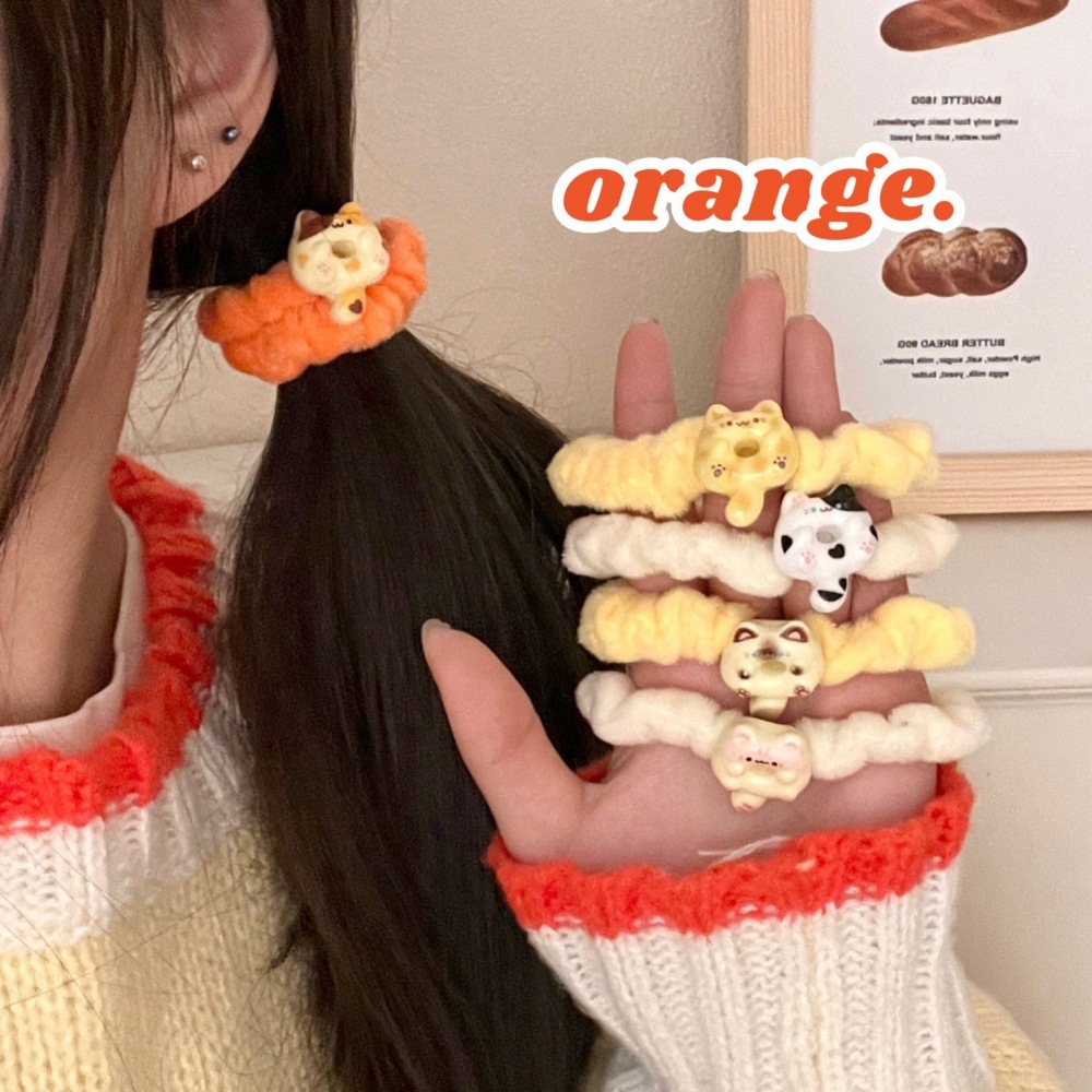 1# three flower cat plush hair rope-orange