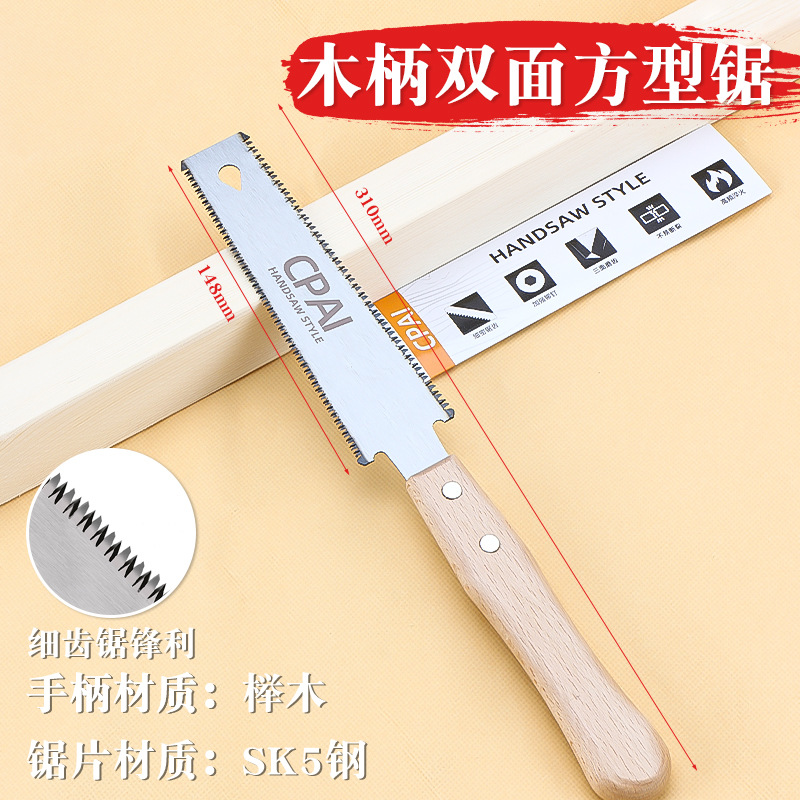 cpai double-sided fine tooth square wooden handle saw [three-sided grinding teeth]]