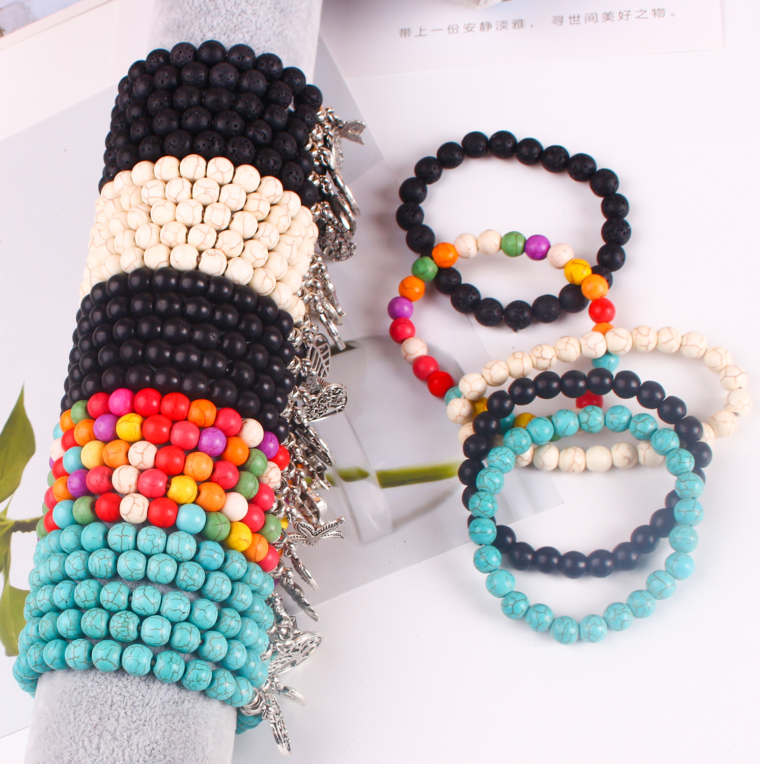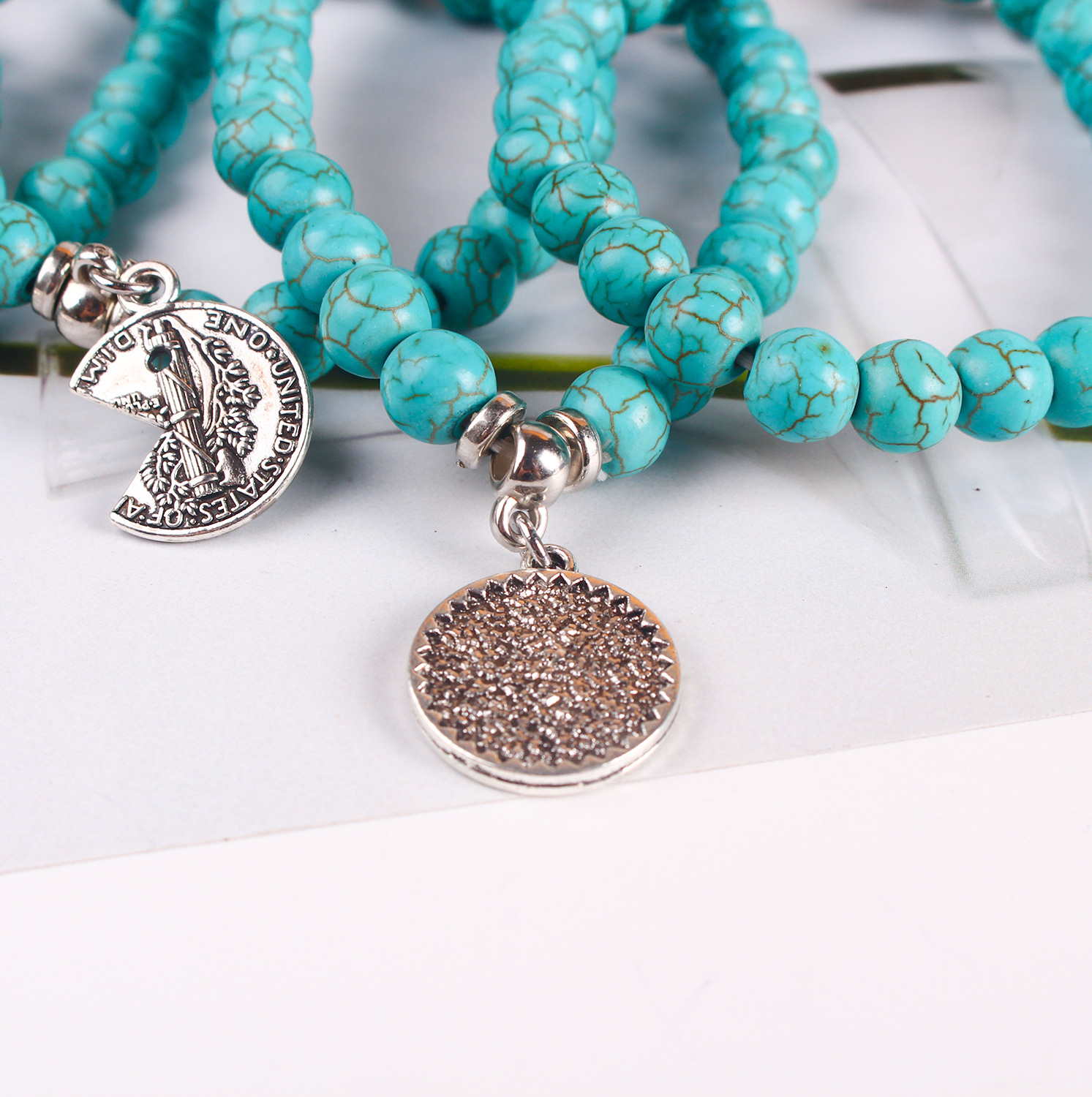 white turquoise round beads