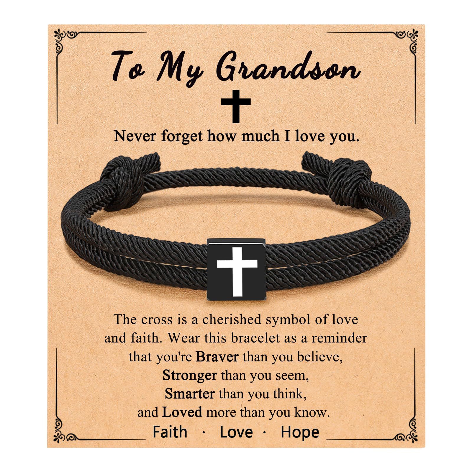 black and white rope cross bracelet + man card