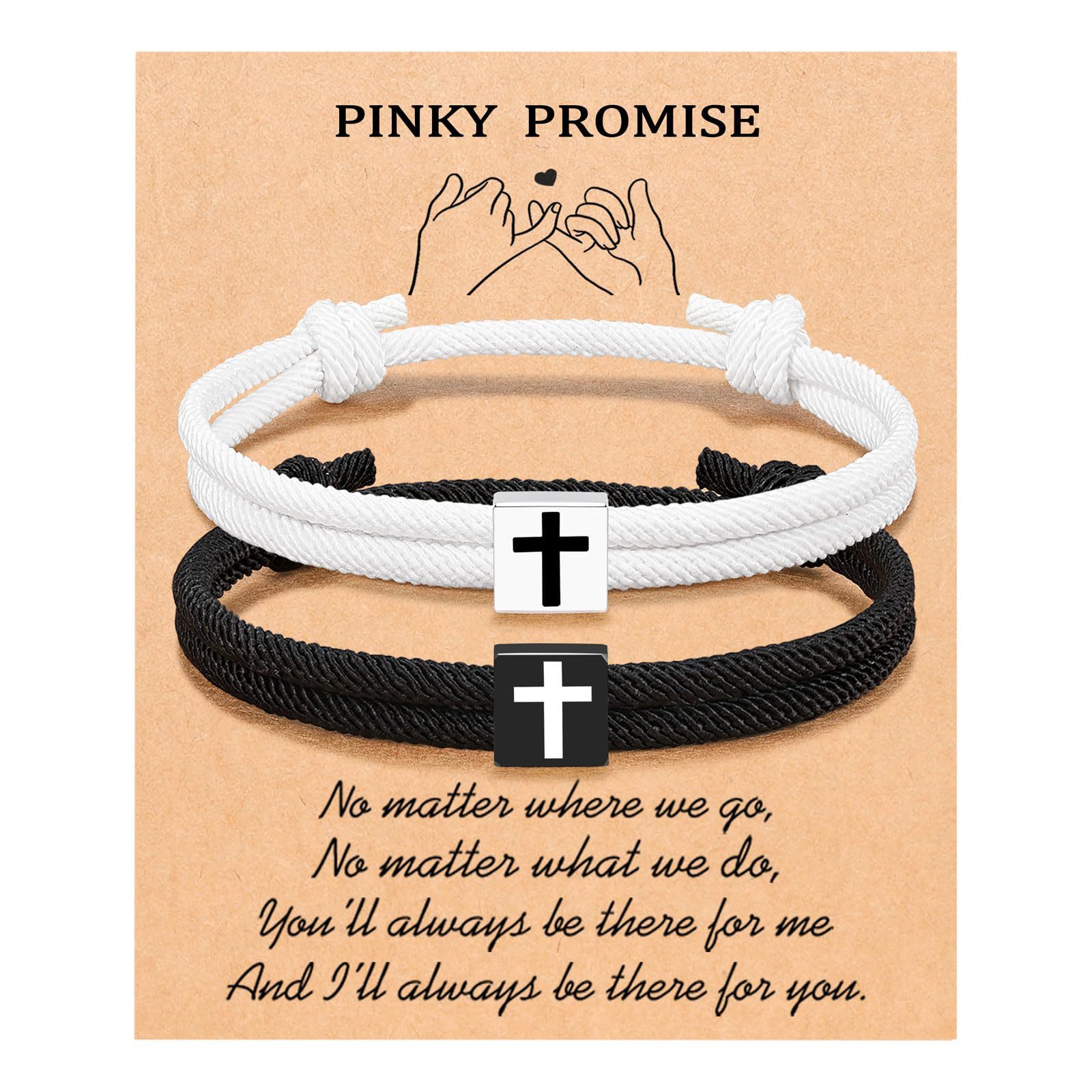 black and white rope cross bracelet + promise card