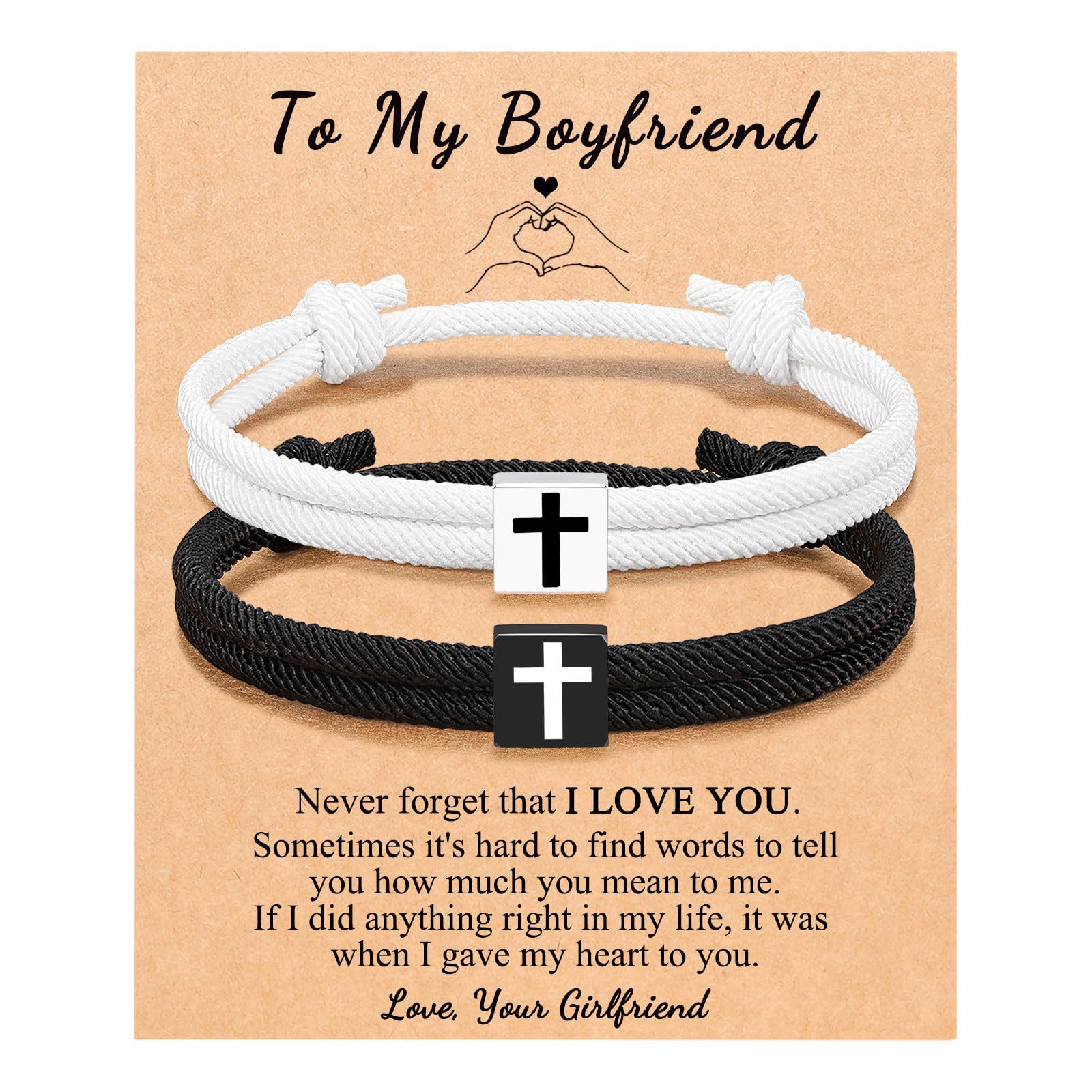 black and white rope cross bracelet + boyfriend card