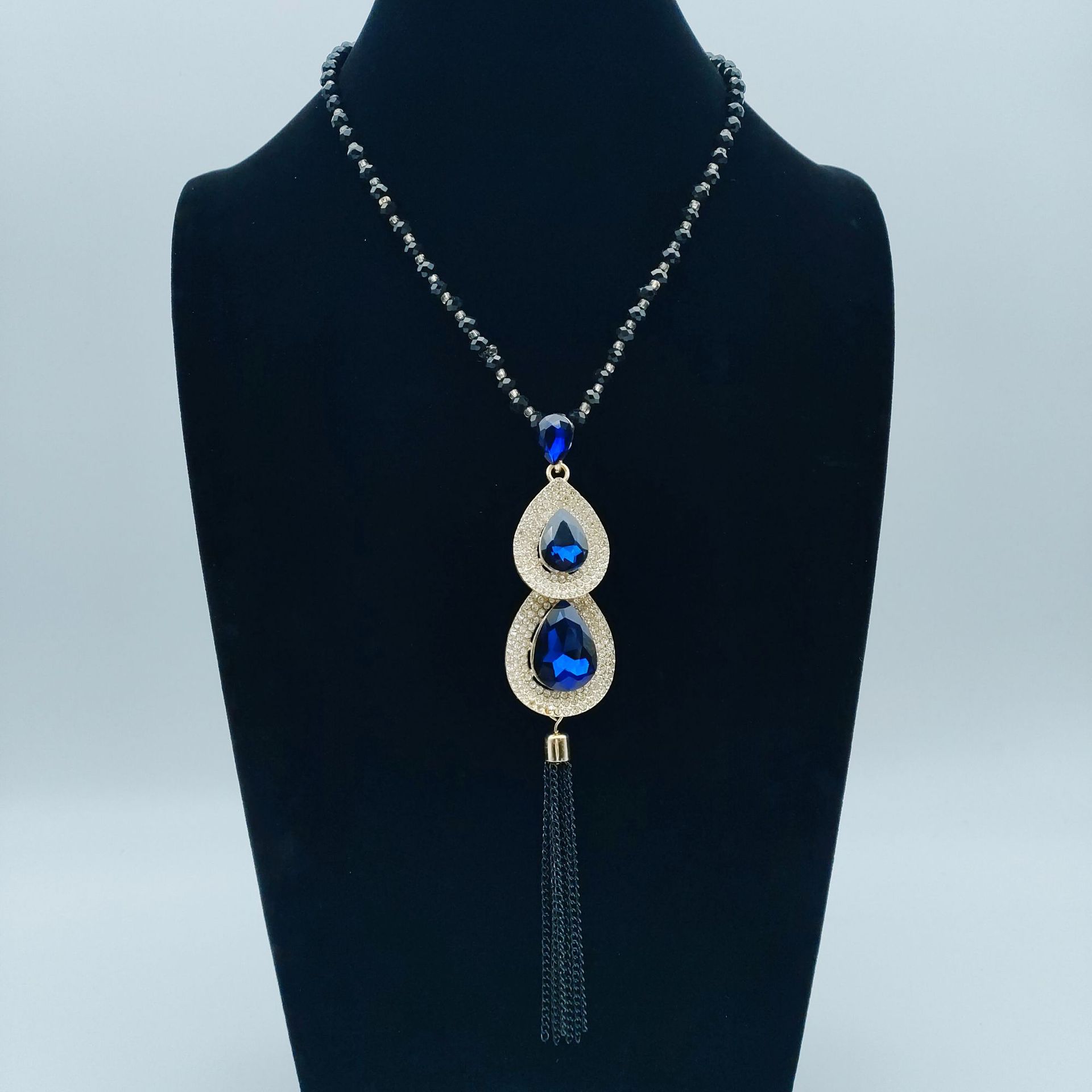 xl415 pearl chain blue cat eye tassel