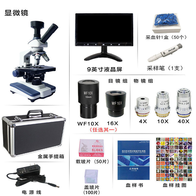 black background +9-inch dedicated display (testing blood cells)
