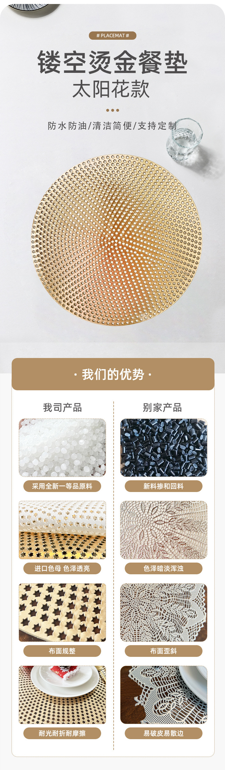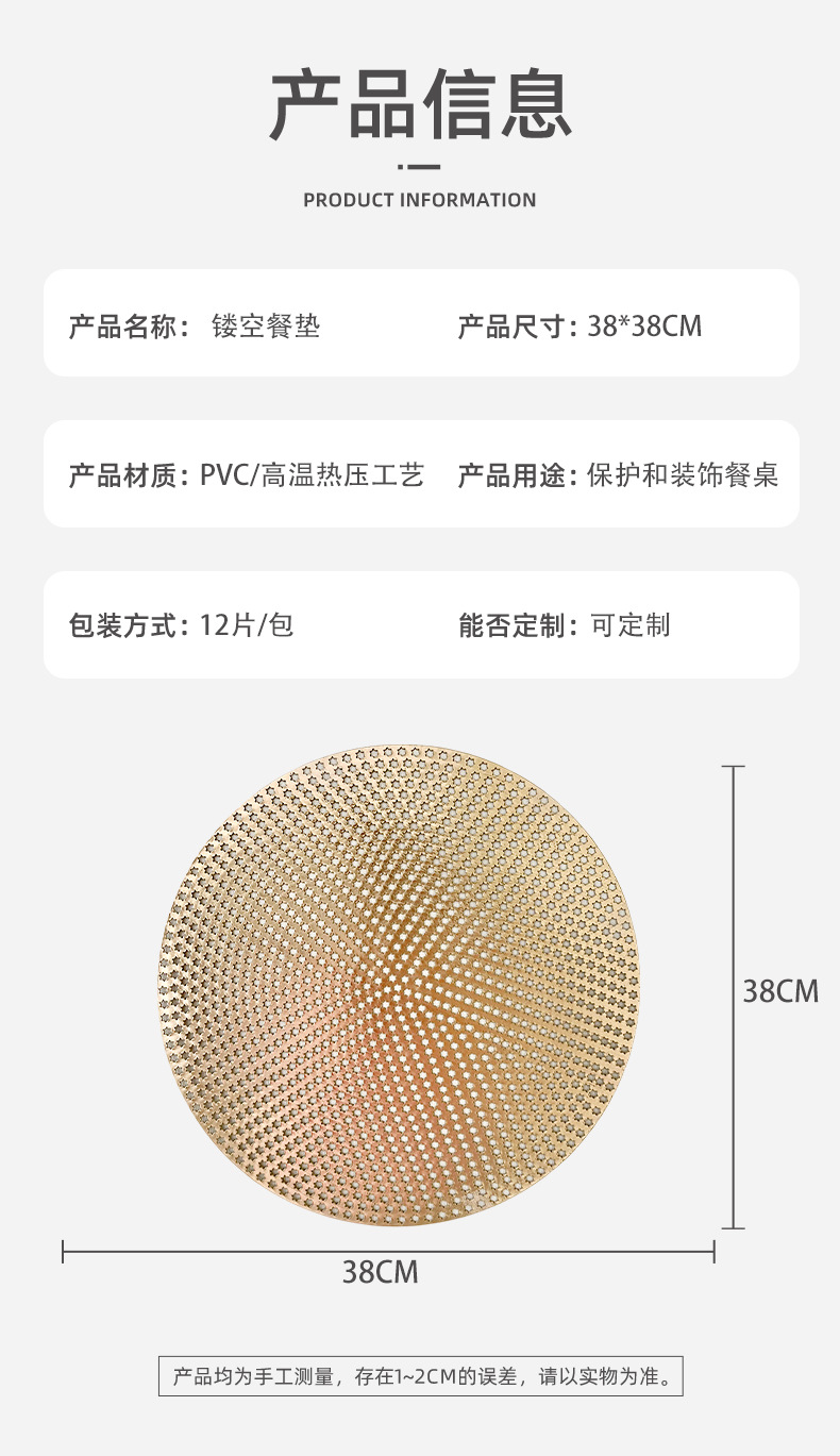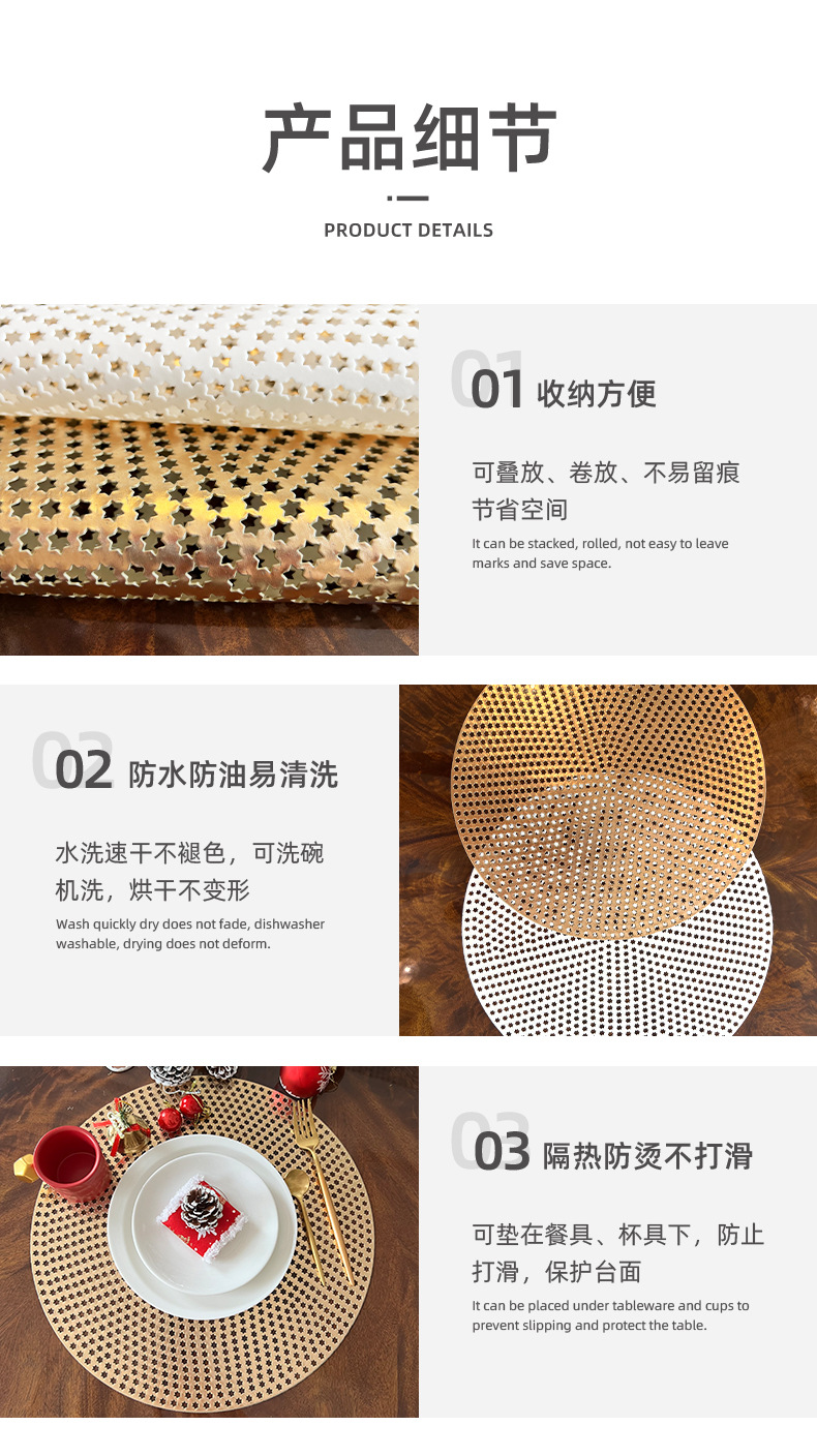 gilding round placemat christmas new nordic table mat pvc simple home heat insulation coasters environmental protection coaster wholesale