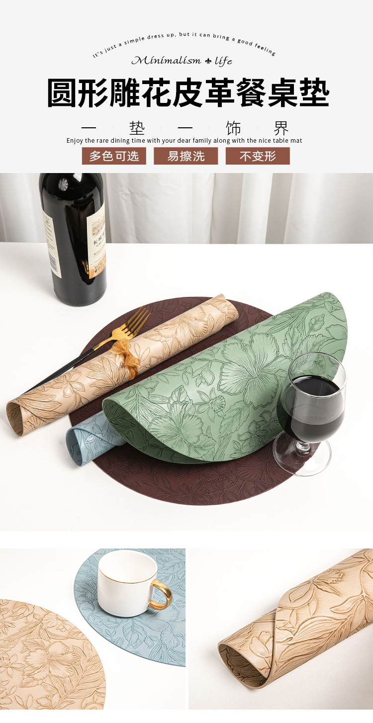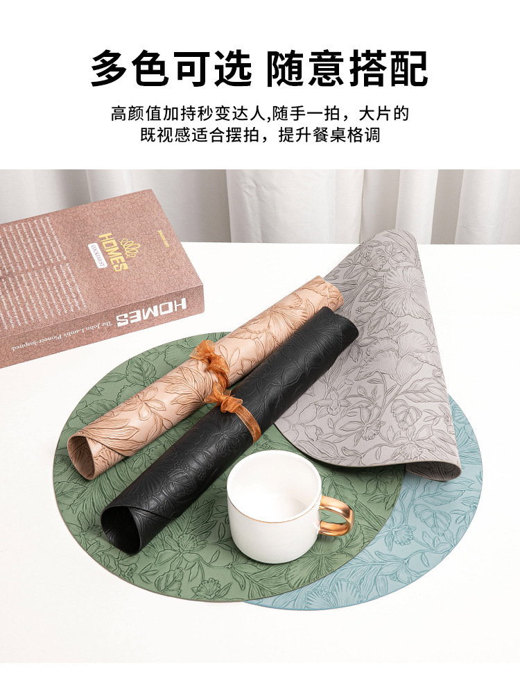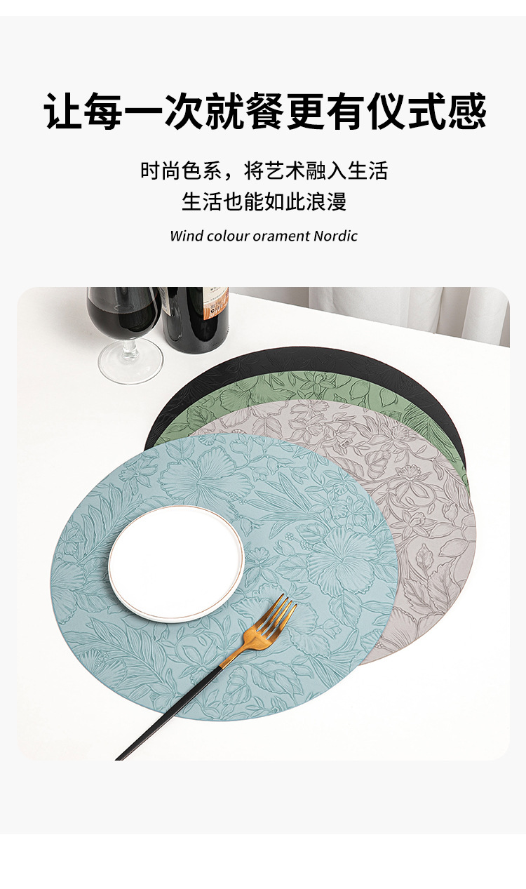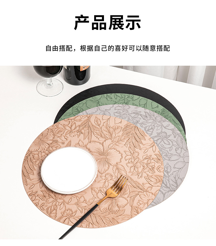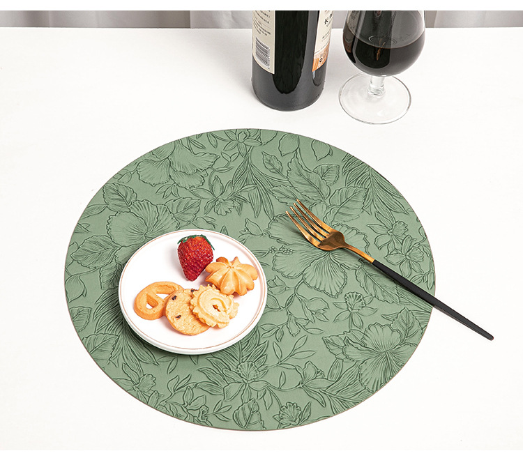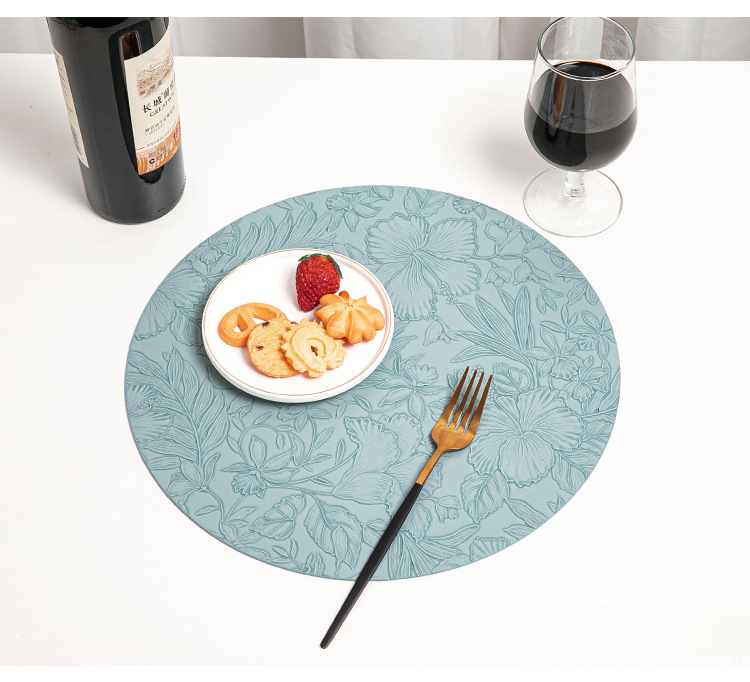 cross-border hot selling european-style round embossed leather placemat waterproof oil-proof hotel western food tableware mat nordic placemat