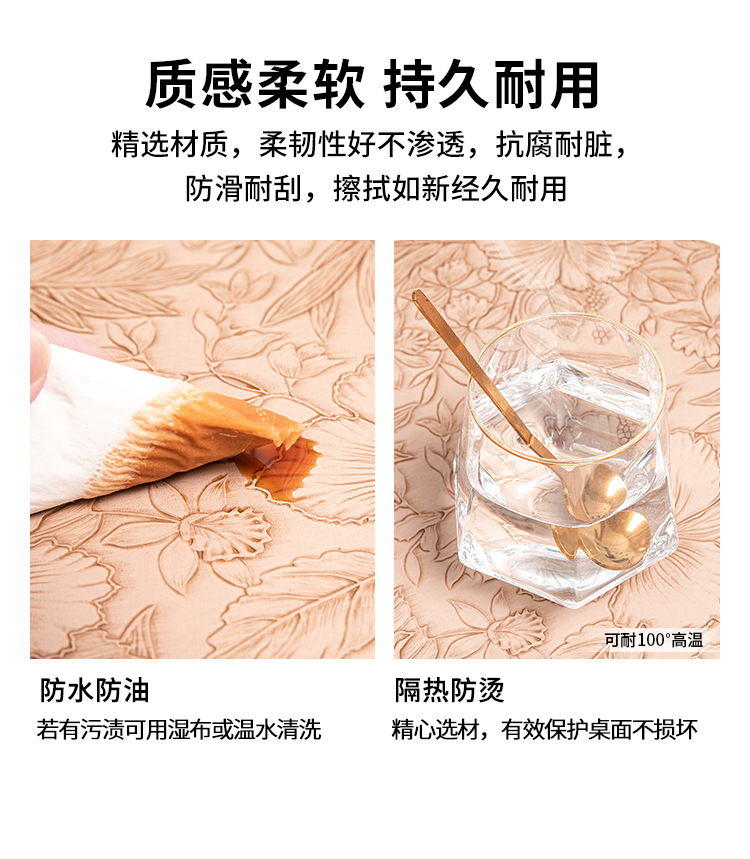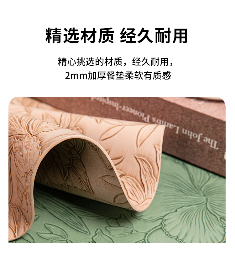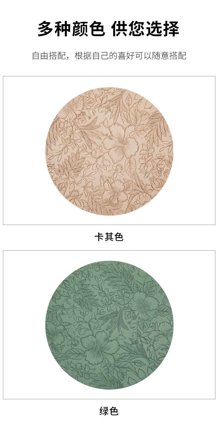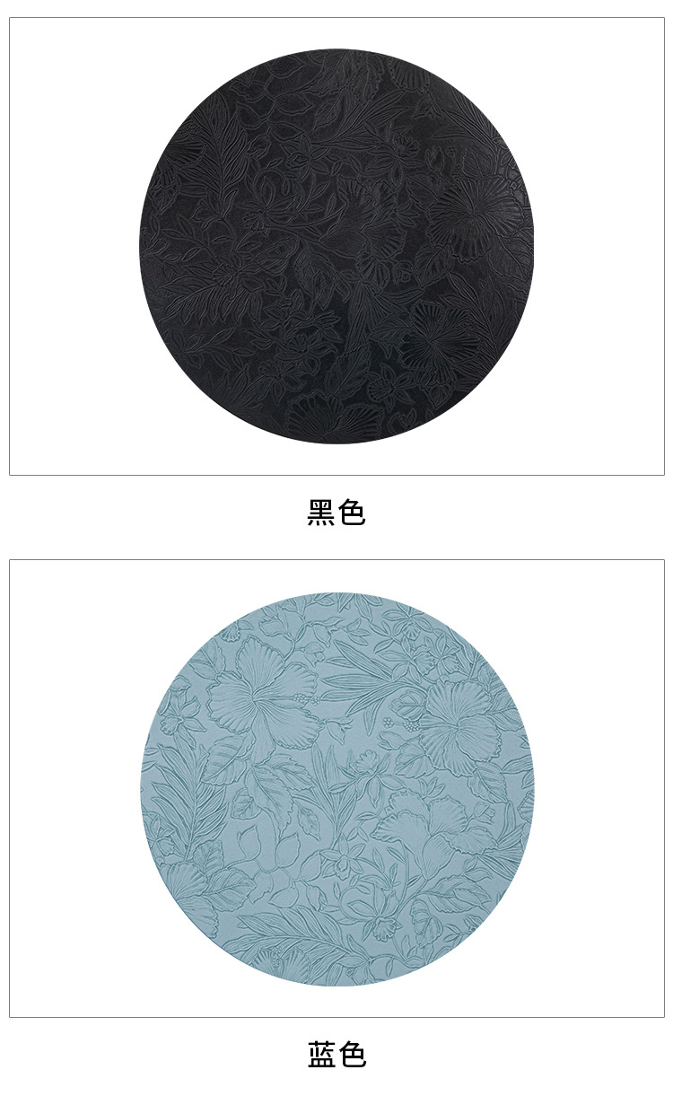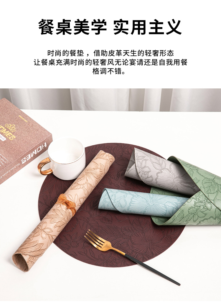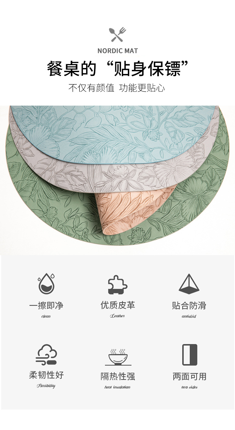 cross-border hot selling european-style round embossed leather placemat waterproof oil-proof hotel western food tableware mat nordic placemat